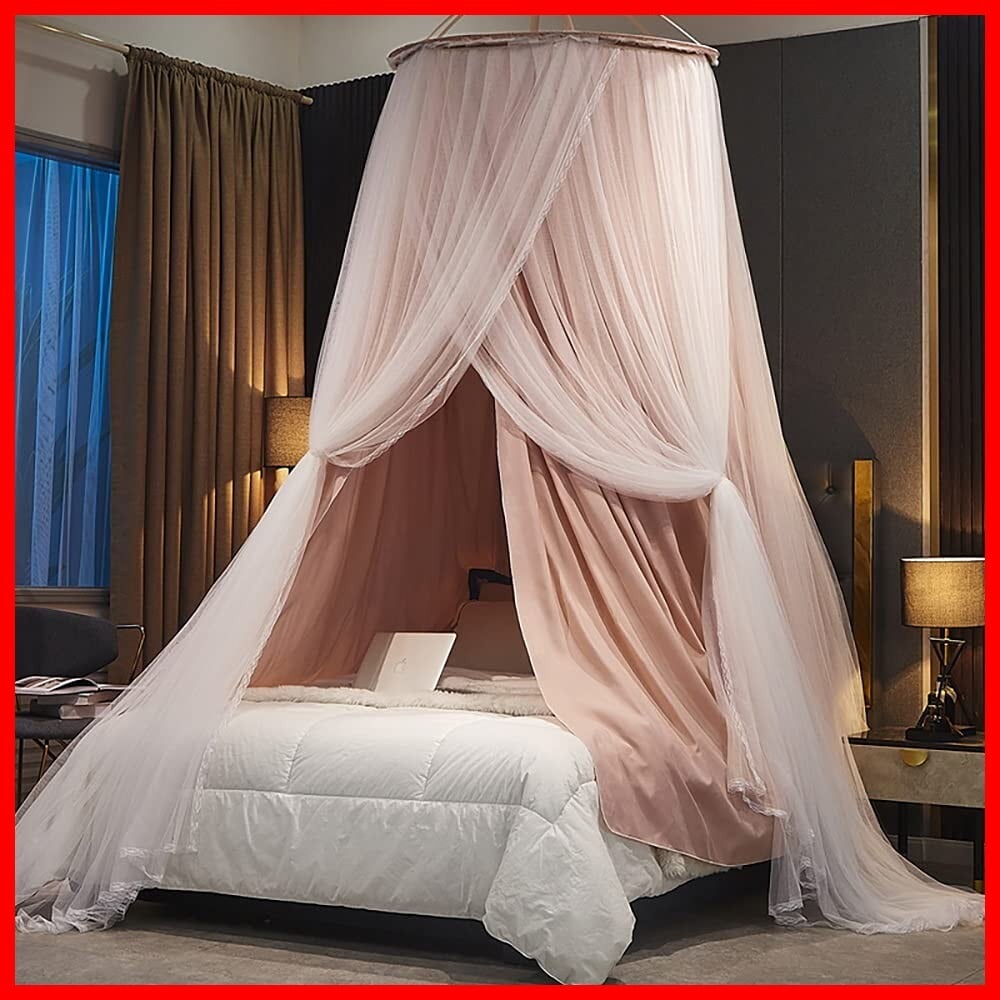 【特価セール】Peyily 天蓋カーテン 蚊帳 円形 モスキートネット お姫様気分 オシャレ 吊り下げ インテリア 防虫防蚊 快適な安眠へ 取り付け簡単 (約)直径100×高280cm (ピンク)