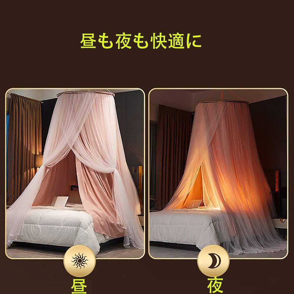 「この『Peyily 天蓋カーテン』で、おしゃれな空間を演出しながら快適な眠りを楽しみましょう!」/特徴:華やかなピンク色の円形デザインのこの蚊帳は、インテリアとしても映え、吊り下げ設計により簡単に取り付けができます。お部屋にお姫様気分をもたらし、リラックスした時間を提供します。