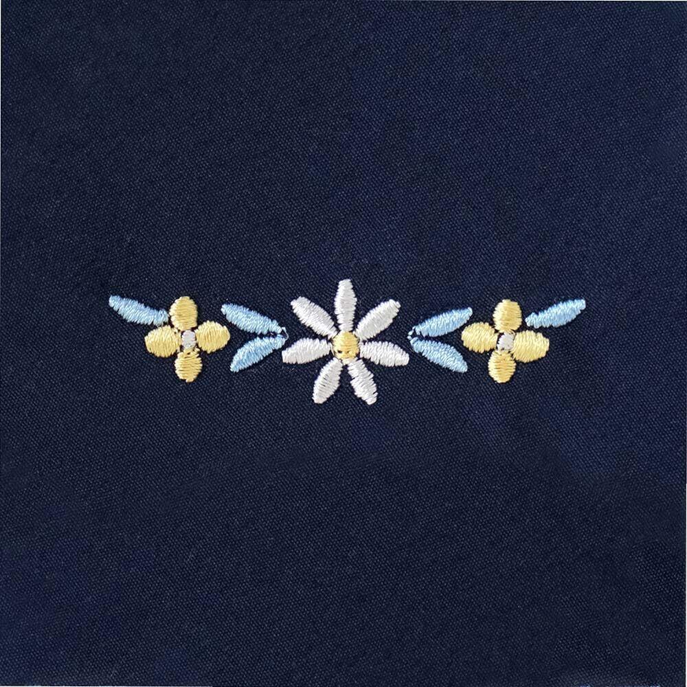 お着替えのお洋服を包むのにちょうど良い大きさの風呂敷です。 お花の刺繍を入れているので、自分の物だと一目で分かります。 入園、入学後も長く愛用していただけます。 コンパクトに折りたためるのでお出かけにも最適です。