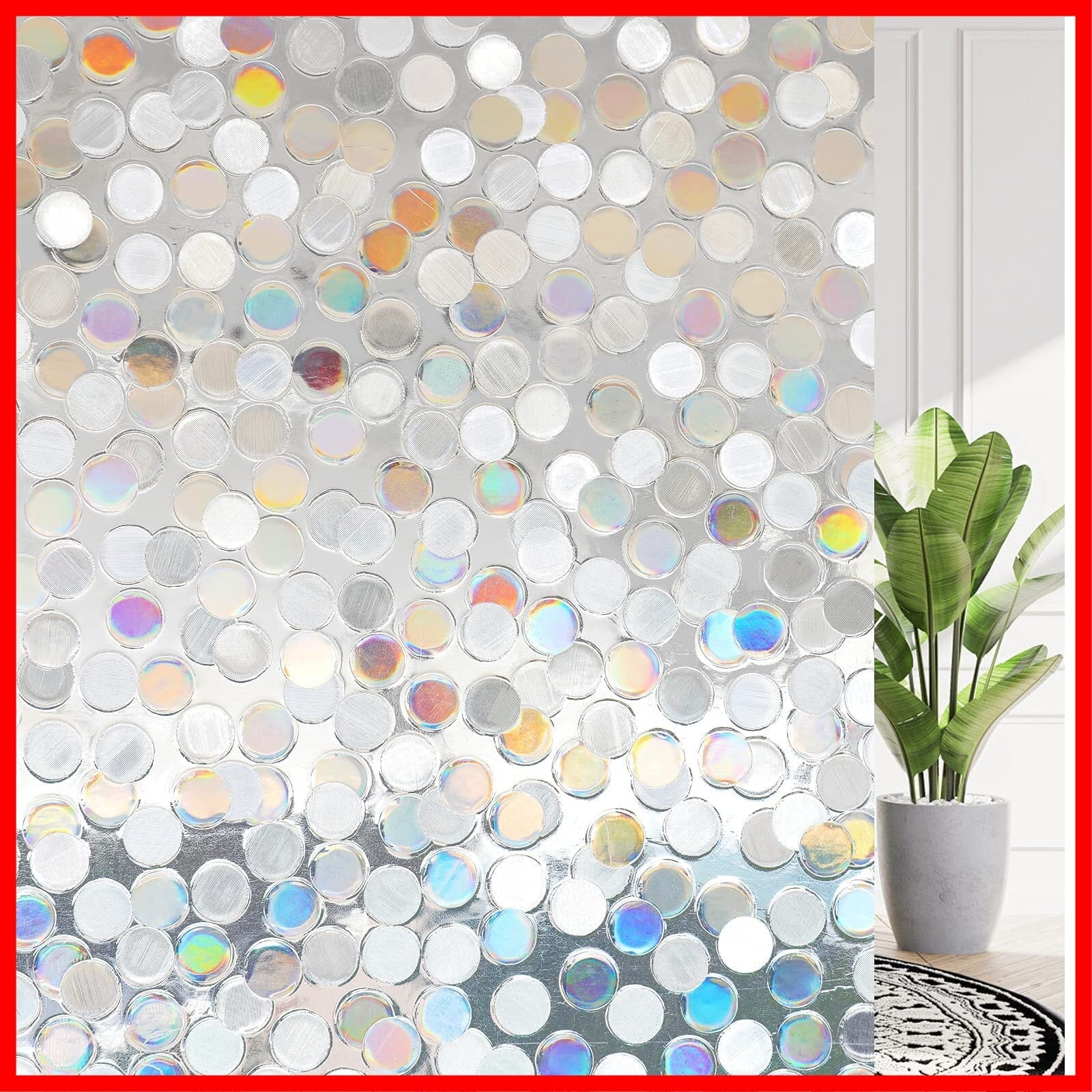 Rabbitgoo 窓 めかくしシート ガラス 窓用 フィルム 目隠し 遮光 断熱 結露防止 リメイク 日よけ 風呂 浴室 食器棚 ベランダ 窓ガラス 目隠しシート 断熱シート 結露防止シート 窓用フィルム シート シール ステンドグラス 貼ってはがせる 窓に貼るカーテン 外から見えない おしゃれ 飛散防止 (水玉柄 44.5 x 120cm)