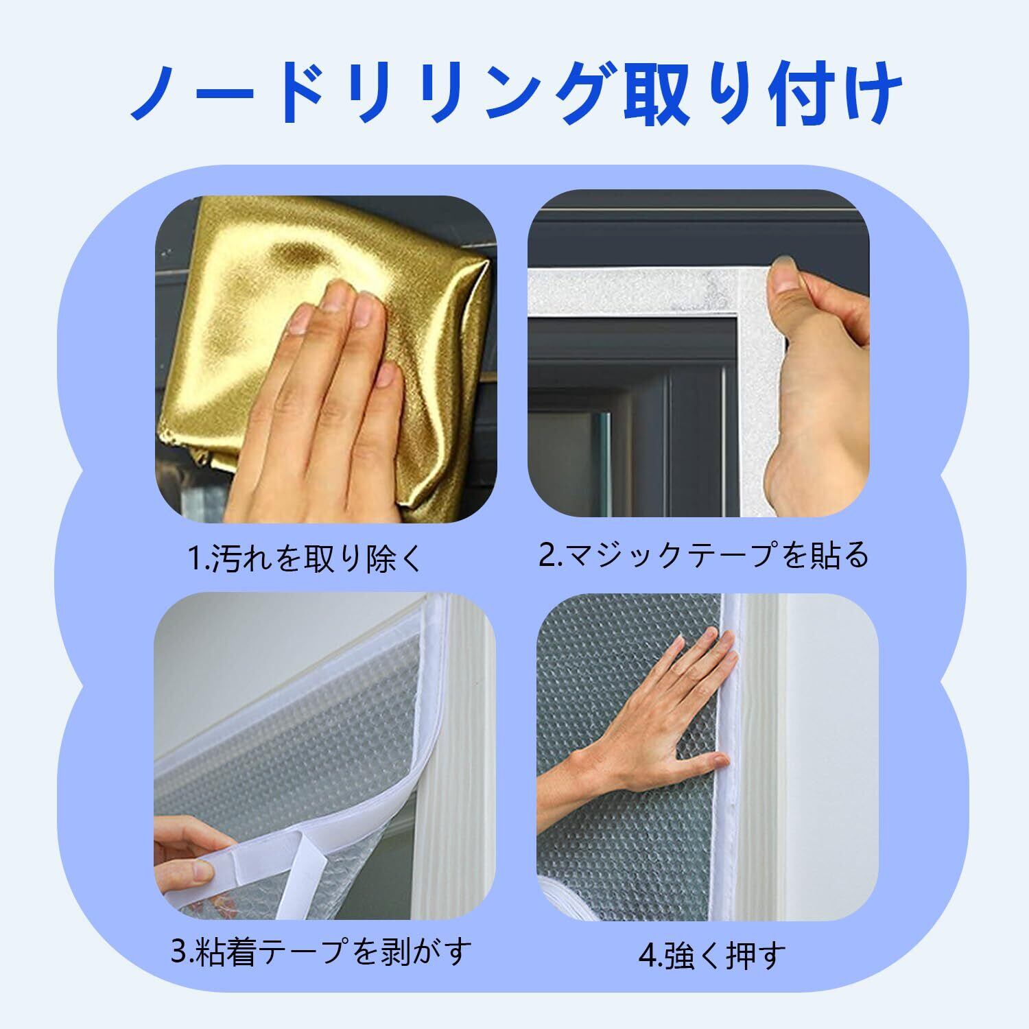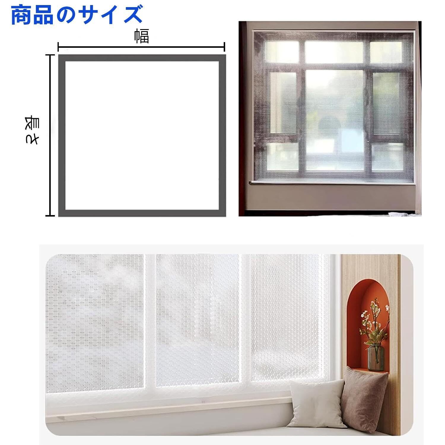この防寒シートは、優れた保温効果を発揮し、屋内の暖かさをしっかりと保持します。冷気を遮断することで、寒い冬でも快適な温度を保ちながら、快適な生活環境を実現できます。特に冬場に暖房の効率を高め、エネルギーコストの削減にも貢献します。
