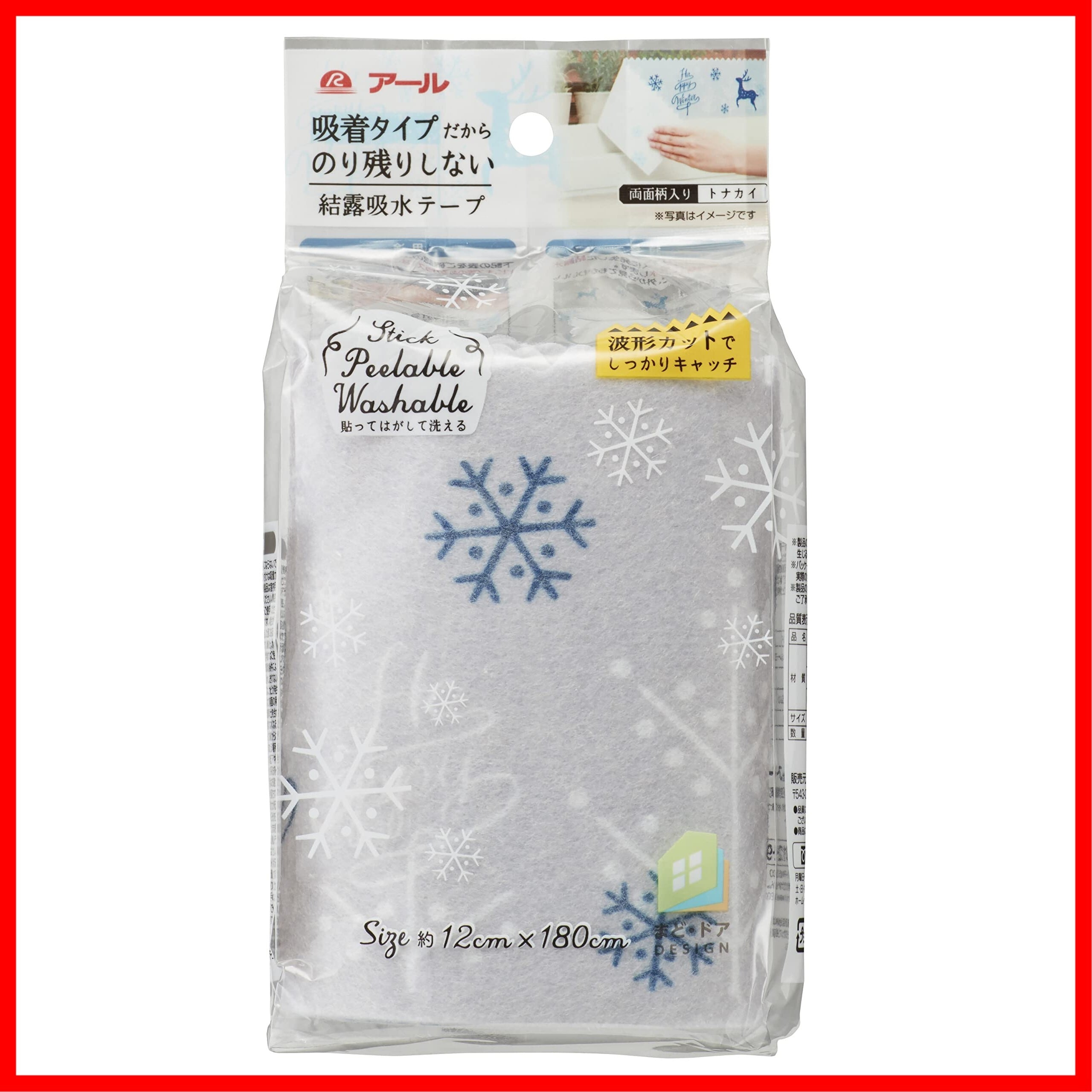 アール(R) 結露吸水テープ 吸着タイプ まど活 トナカイ 12×180(cm) 繰り返し使用可能 粘着剤不使用 H-278