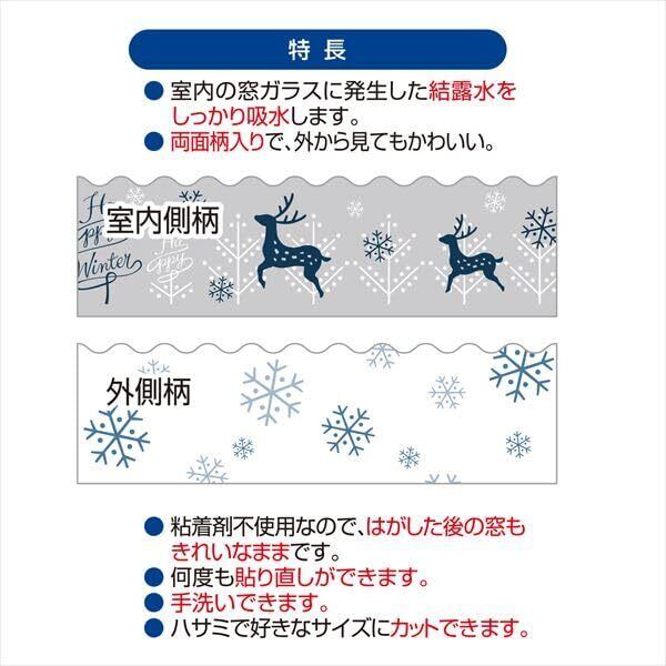 【数量限定】アール(R) 結露吸水テープ 吸着タイプ まど活 トナカイ 12×180(cm) 繰り返し使用可能 粘着剤不使用 H-278
