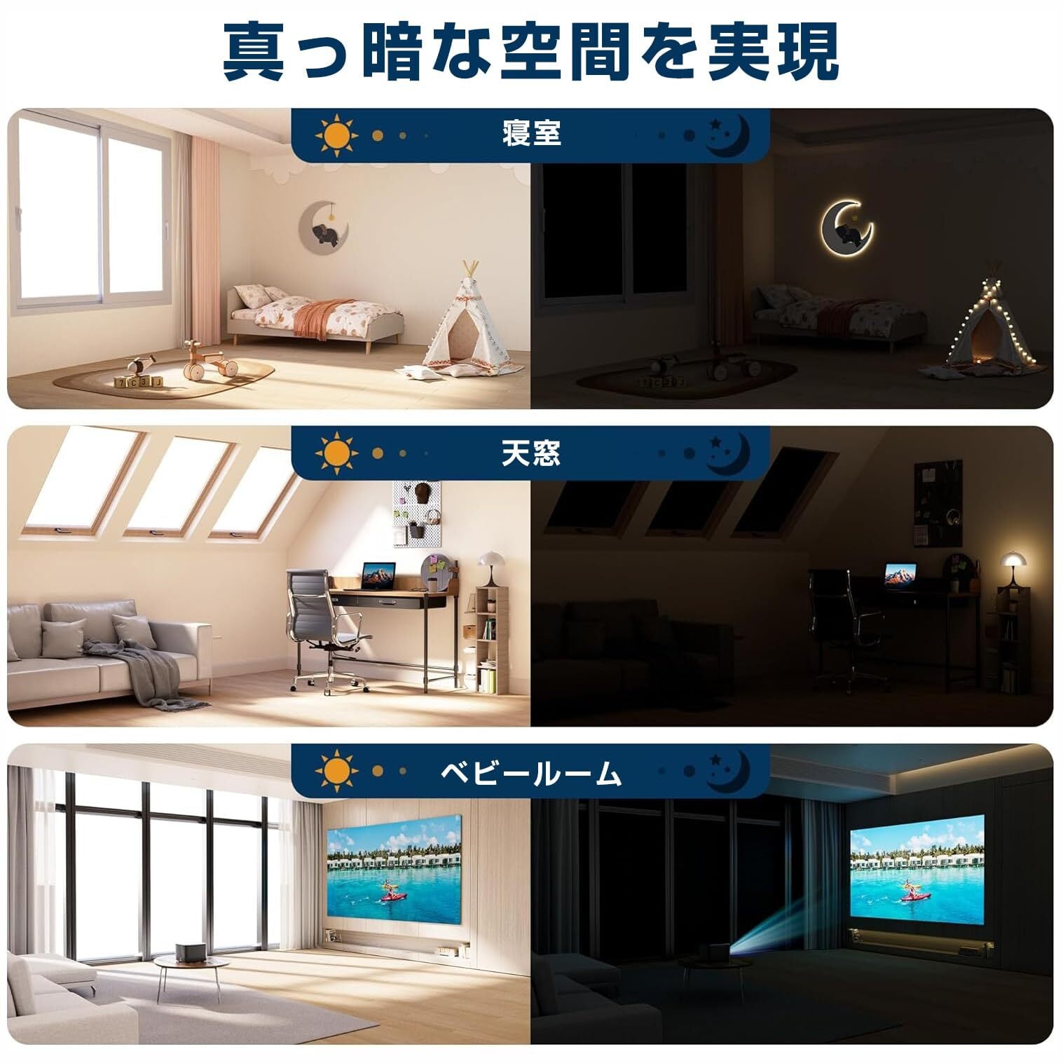 100%遮光性能: 可視光線透過率0%を実現し、完全な目隠し効果と紫外線カット機能を提供、室内温度の調整にも効果的