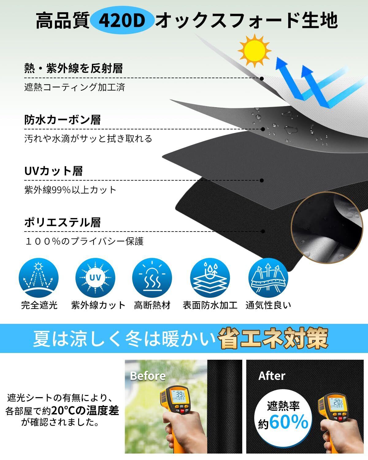 「この『遮光シート』で、快適な住空間を実現しましょう!」/特徴:サイズ1.5m×2mのこの遮光シートは、高性能の420Dオックスフォード素材を使用し、優れた遮光効果を持っています。日差しが強い時期や、西日対策にも最適で、しっかりとプライバシーを守ります。