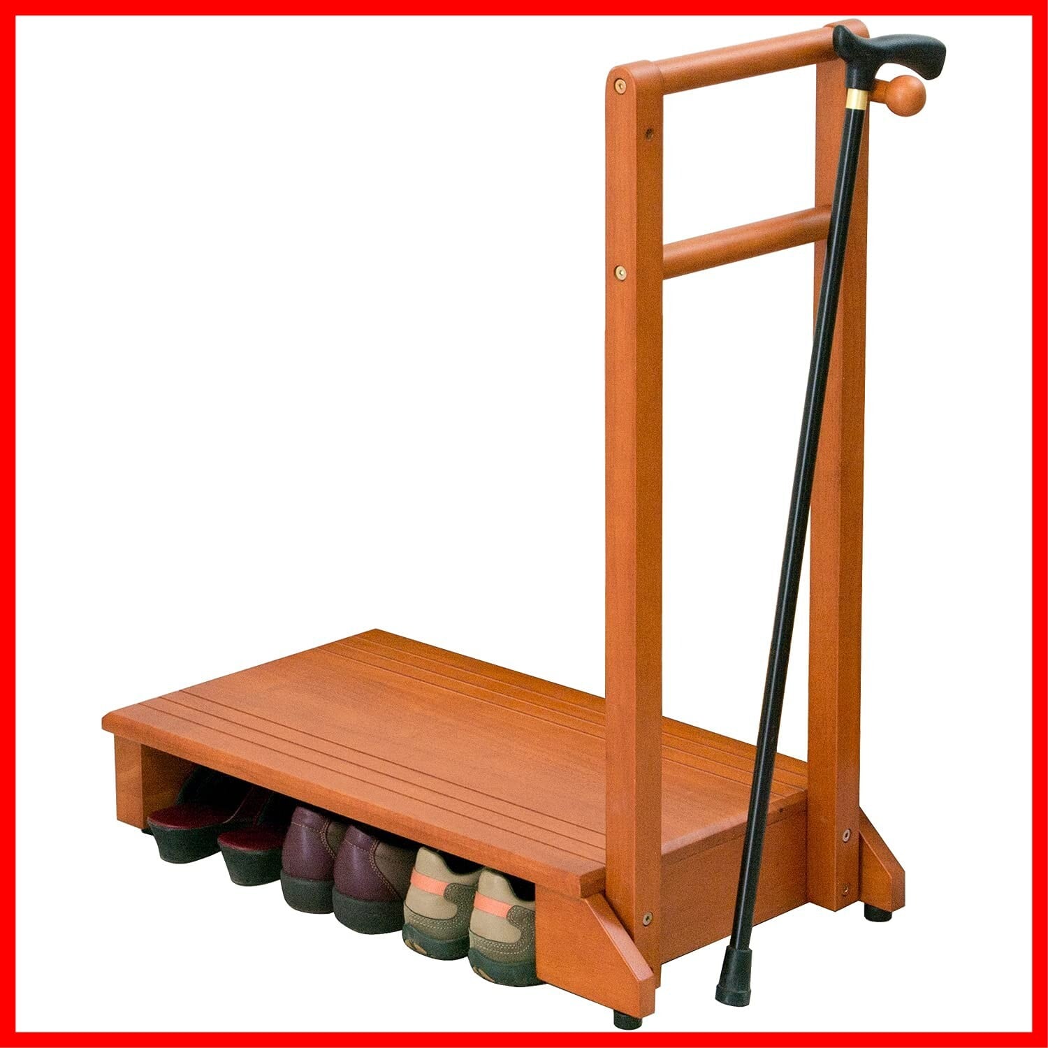 【数量限定】萩原(Hagihara) 玄関踏み台 玄関台 手すり付き踏み台 手すり台 スリム 【安心の耐荷重100kg】 ひざ 腰 負担軽減 子供 高齢者 ペット 幅70 ライトブラウン VH-7934LBR-S 幅70cm | Cherry Blossoms