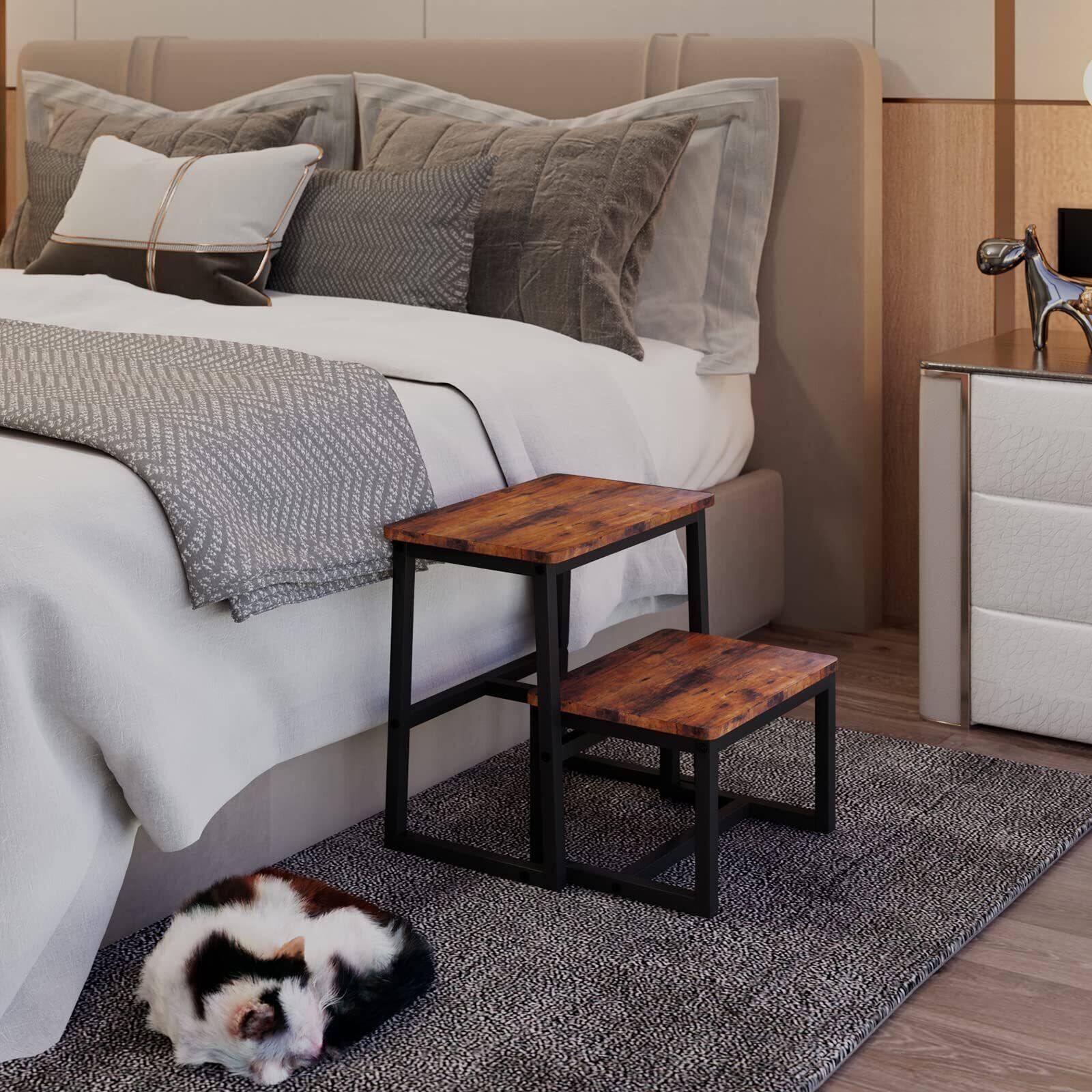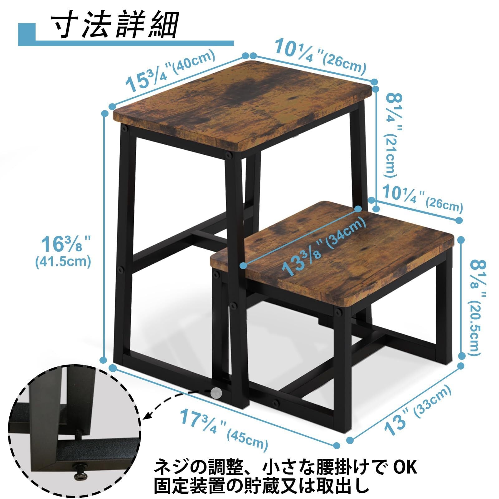 【丈夫で耐久性に優れた踏み台】身長の高い踏み台も低い踏み台も250KGまで耐荷重があります。上質な木材(mdf)と金属フレームで作られ、強化されたクロスバーがデザインしてスツールをより強く安定してになります。