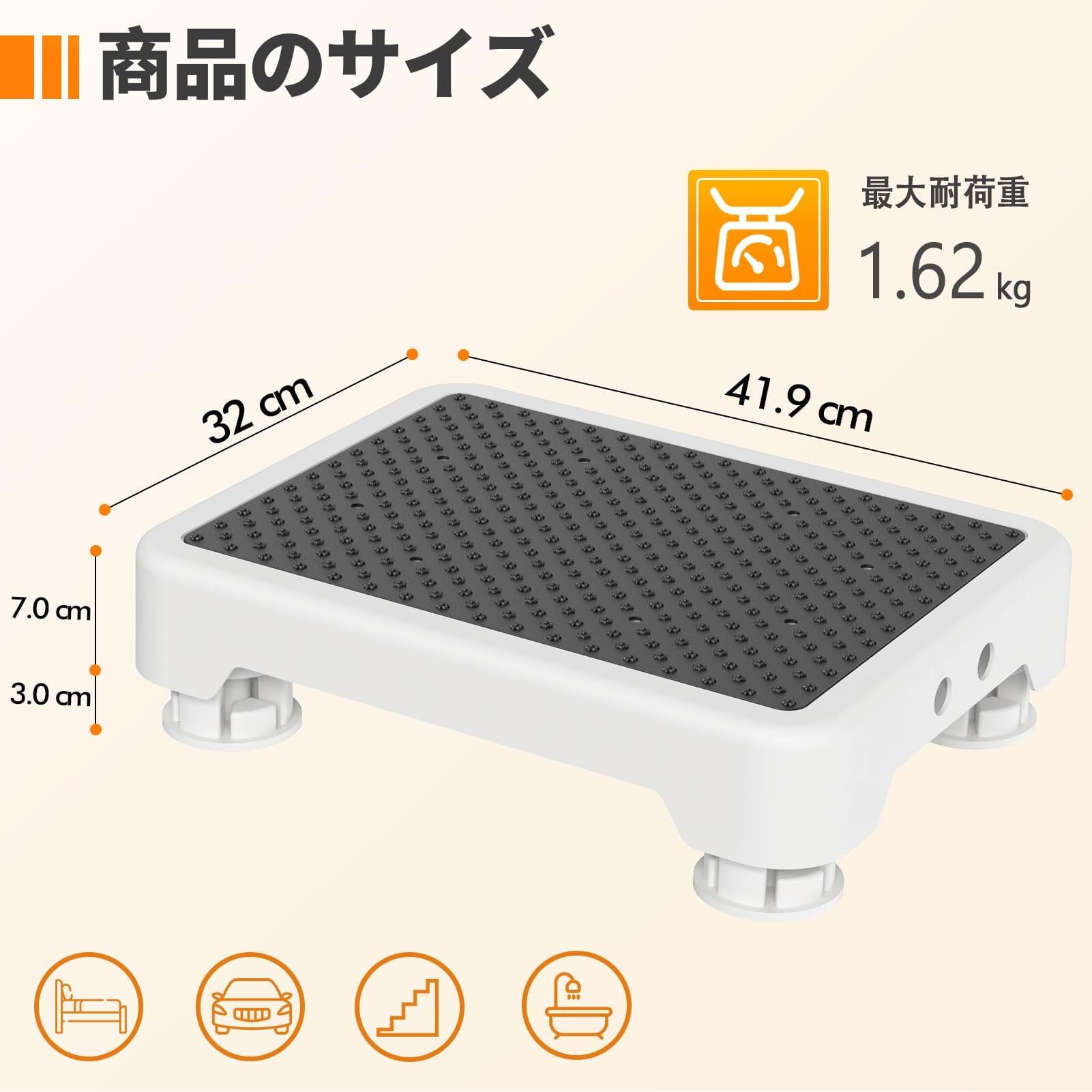この踏み台は、低めの設計により、昇り降りが楽に行えます。滑り止め機能が備わっているため、使用中の安定感も抜群。特に高齢者の方やお子様の迷惑を軽減し、安全な動作をサポートします。