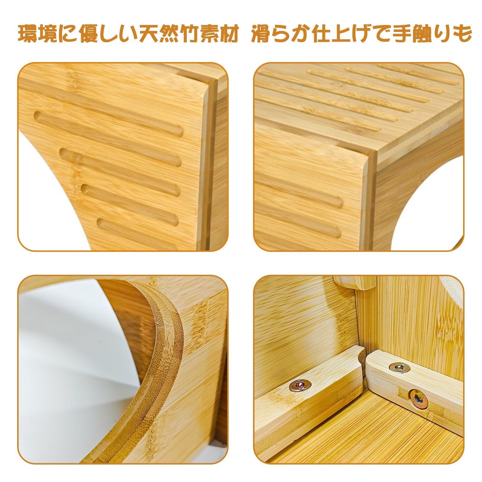 ❶【天然竹材&高耐久設計】:高品質な竹材を使用し、環境に優しく、自然な風合いが特徴です。プラスチック製より頑丈で、耐荷重150kgまで対応。