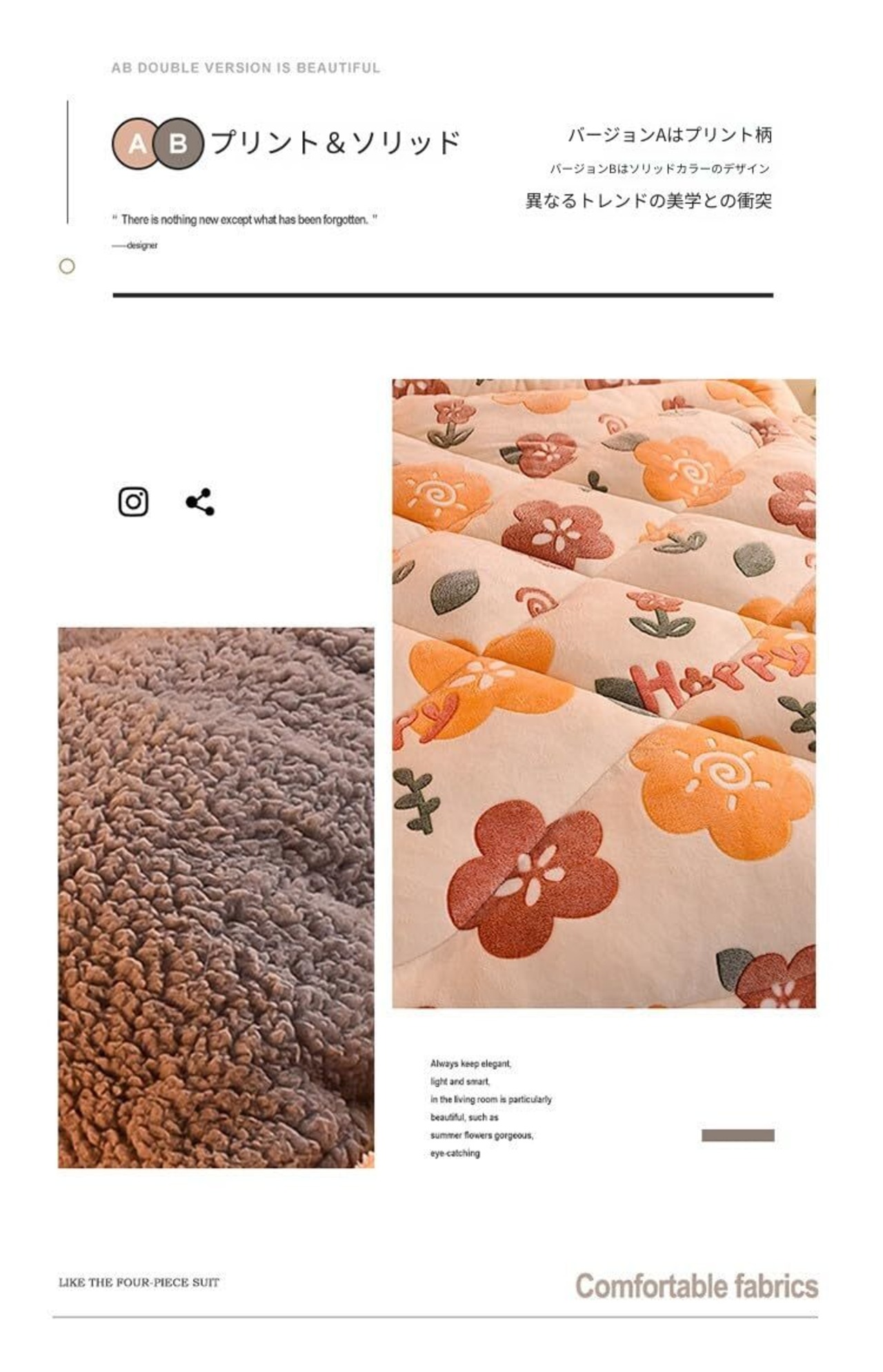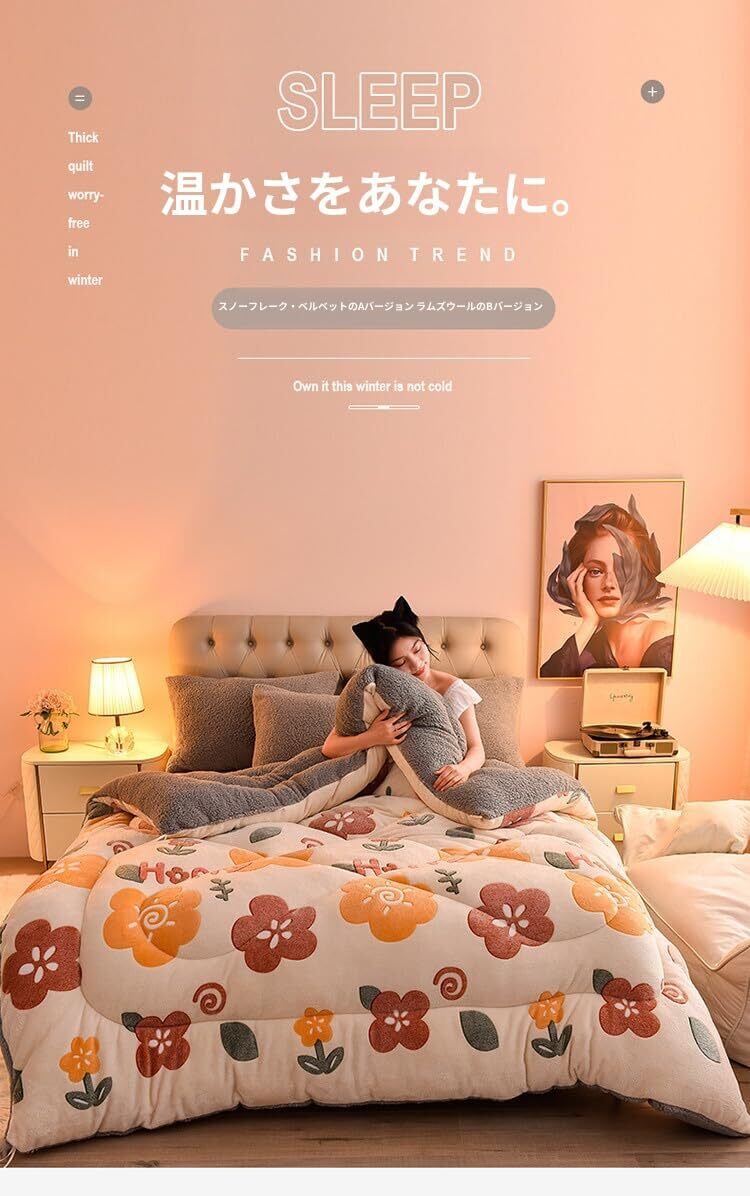 2 製品のスポイントは 両面ベルベットの生地は柔らかく快適で ラムズウールの充填は暖かく シンプルなデザイン エレガントなパターンは 年間を通して使用することができ 通気性 毛玉ができにくく 帯電防止設計 健康的で環境に優しいです