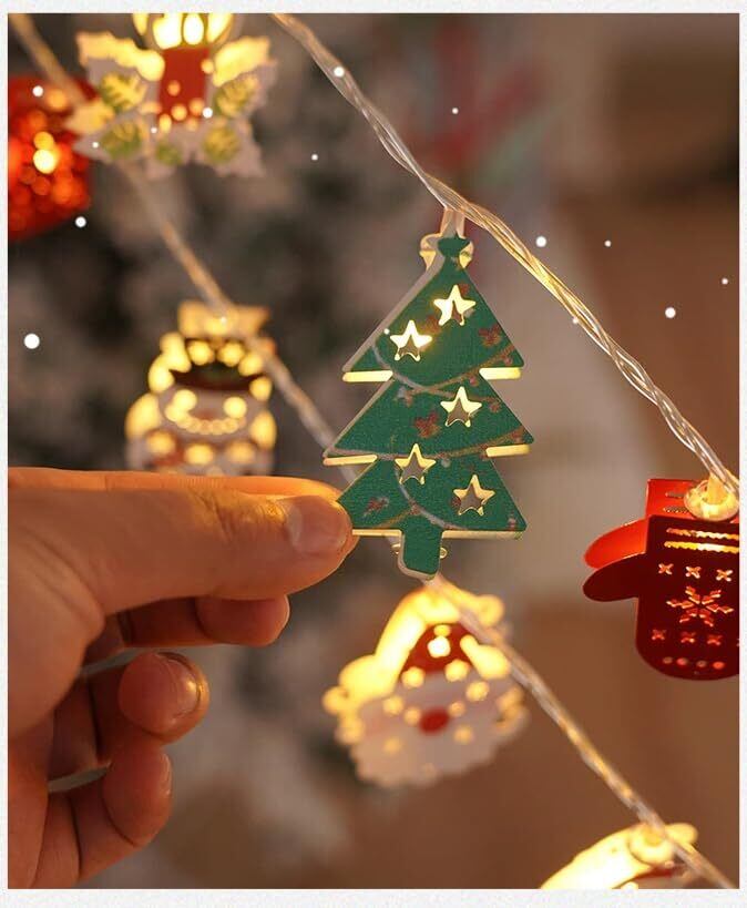 「この『クリスマス イルミネーションライト』で、心が躍るメリークリスマスを演出しましょう!」/特徴:暖かい光を放つLED電球が20個、3mのストリングで飾り付けが簡単に行えます。電池式のため、どこでも手軽に設置でき、特別な瞬間を彩るアイテムです。
