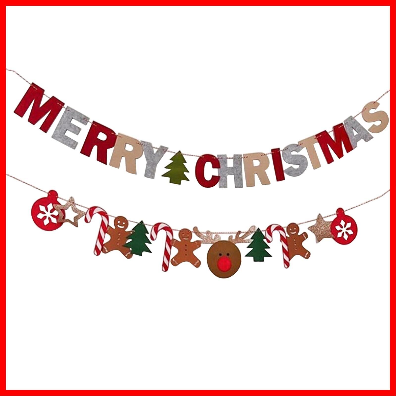 【新着商品】クリスマス 飾り 2セット フェルト クリスマス ガーランド バナー 飾り付け Merry Christmas ジンジャーマン キャンディケーン トナカイ クリスマスツリー オーナメント おしゃれ 壁飾り 窓 玄関 装飾 (A) | Cherry Blossoms