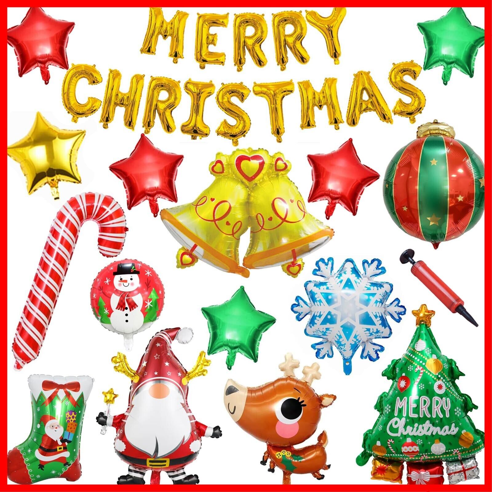 「この『バルーンセット』で、心華やぐクリスマスの雰囲気を演出しましょう!」/特徴:大容量のバルーンセットには、サンタクロースやクリスマスツリーをテーマにした多彩な風船が含まれており、どんなパーティーにもぴったりの装飾アイテムです。豪華な飾り付けで、クリスマスの楽しい雰囲気を一層引き立てます!
