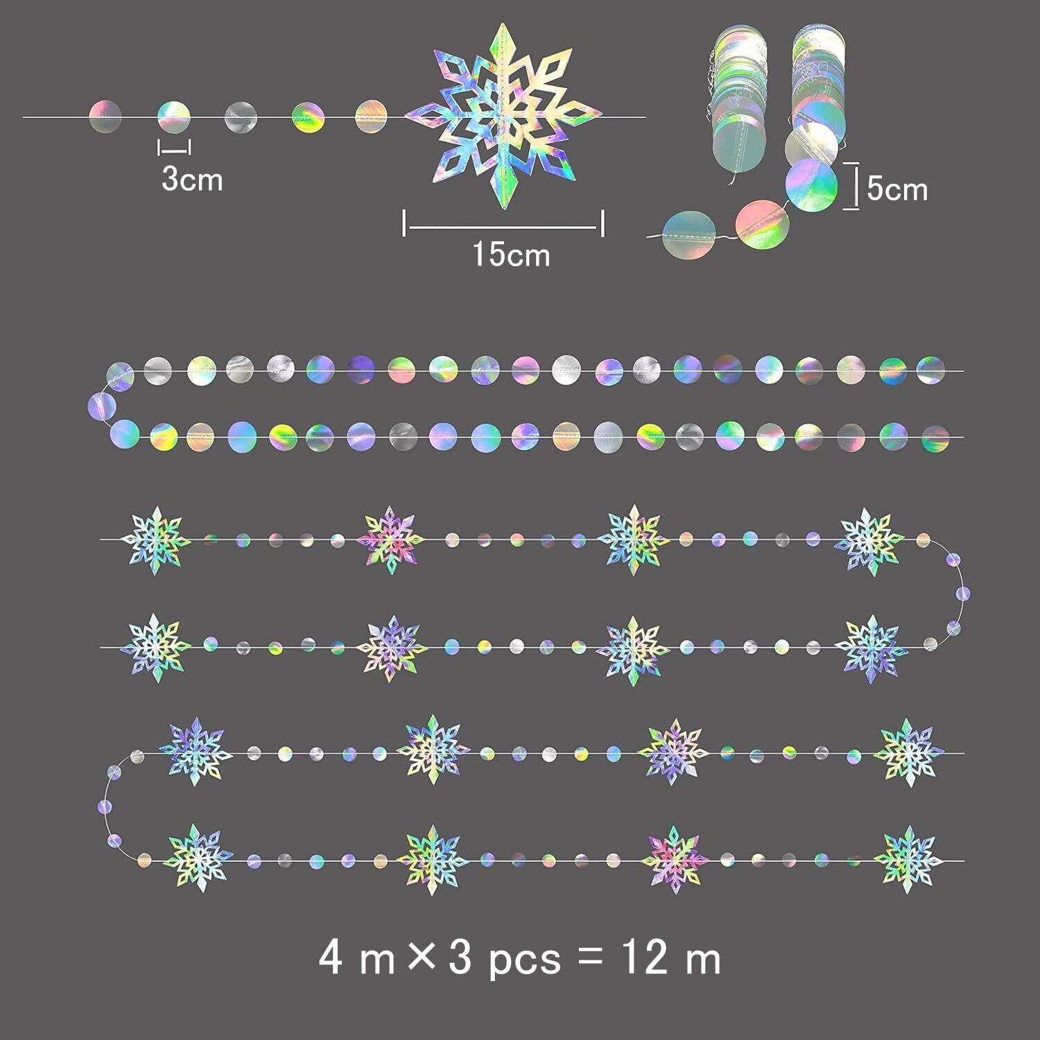 Hopeholic クリスマス ガーランド 雪の結晶 丸形 3本入 約12m長 スノーフレーク クリスマス 飾り 誕生日 結婚式 新年 ガーランド