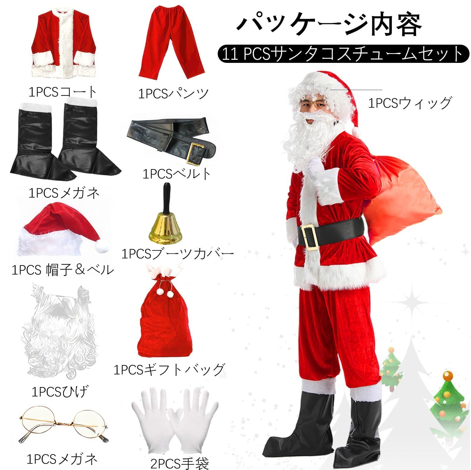 [Yi-gog] サンタクロース コスチューム サンタ コスプレ サンタ 衣装クリスマス 衣装 トナカイ豪華11点セット 長袖 パーティー サンタ服 厚手 大人用