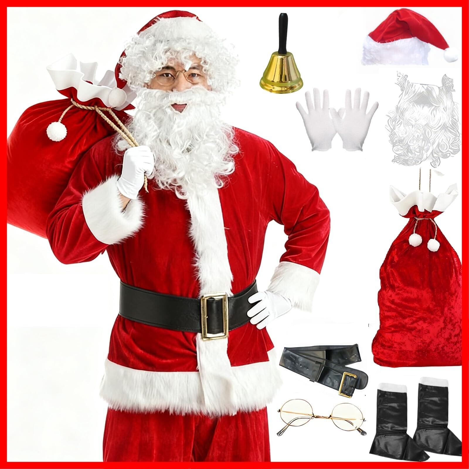 「この『[Yi-gog] サンタクロース コスチューム』で、特別なクリスマスの雰囲気を演出しましょう!」/特徴:豪華な11点セットのサンタコスチュームは、長袖デザインでしっかりとした厚手素材を使用。大人用サイズで、クリスマスパーティーやイベントにぴったりなアイテムです。