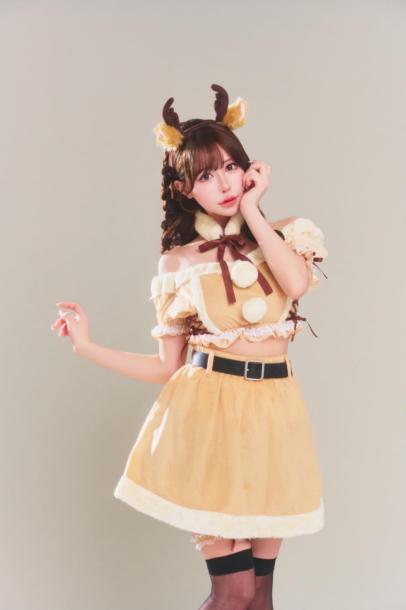 「この『クリアストーン グランノエル コスプレ』で、楽しいクリスマスの雰囲気を演出しましょう!」/特徴:かわいらしいトナカイデザインのセパレートコスプレは、レディースサイズでクリスマスパーティーやイベントにぴったりのアイテムです。ブラウンの柔らかい生地が、クリスマスの楽しさを引き立てます。
