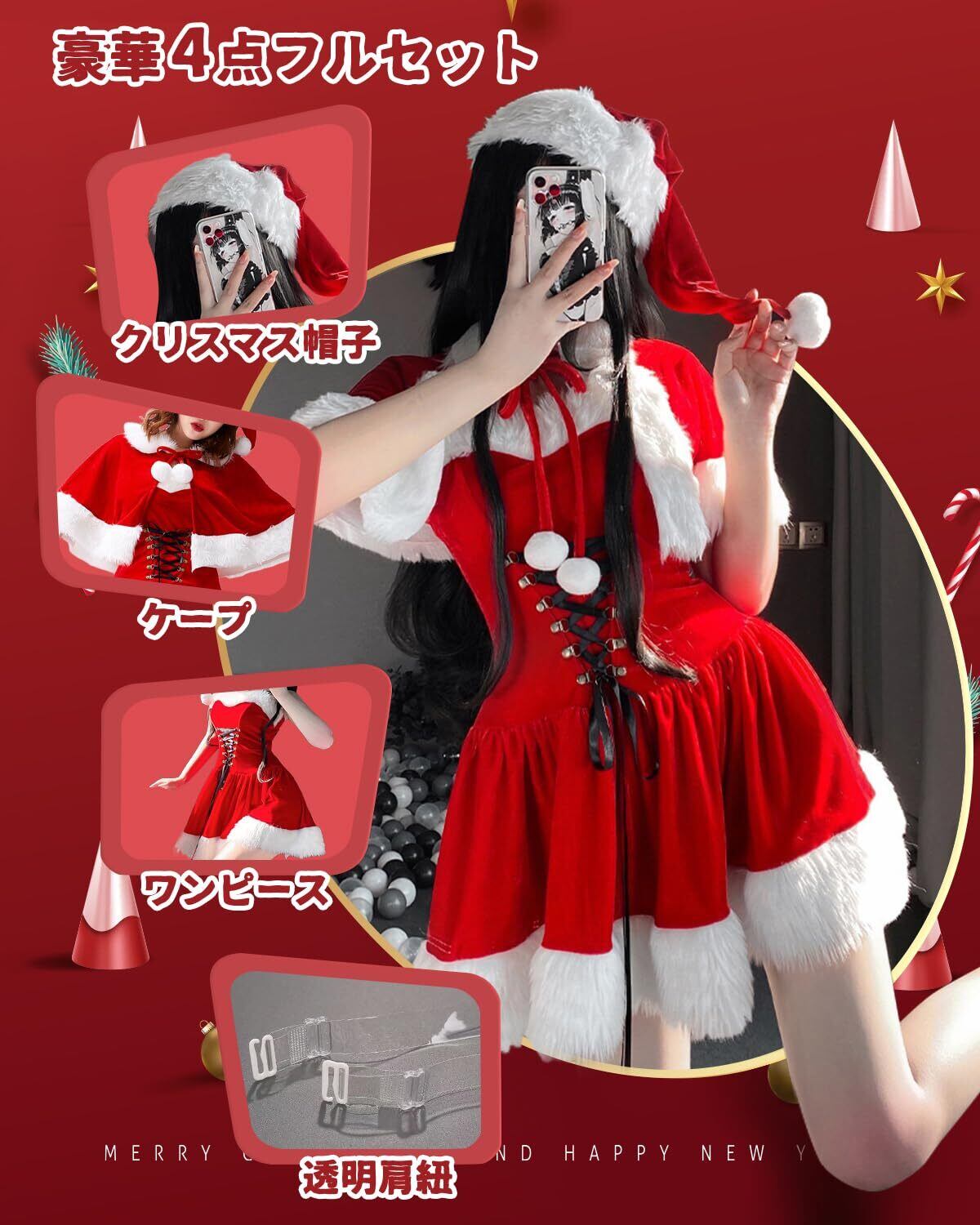 「この『サンタ コスプレ』で、楽しいクリスマスの雰囲気を演出しましょう!」/特徴:可愛らしいデザインのこのレディースサンタコスは特別な4点セットで、クリスマスパーティーやイベントにピッタリ。2wayスタイルなので、気分によって印象を変えて楽しめます!