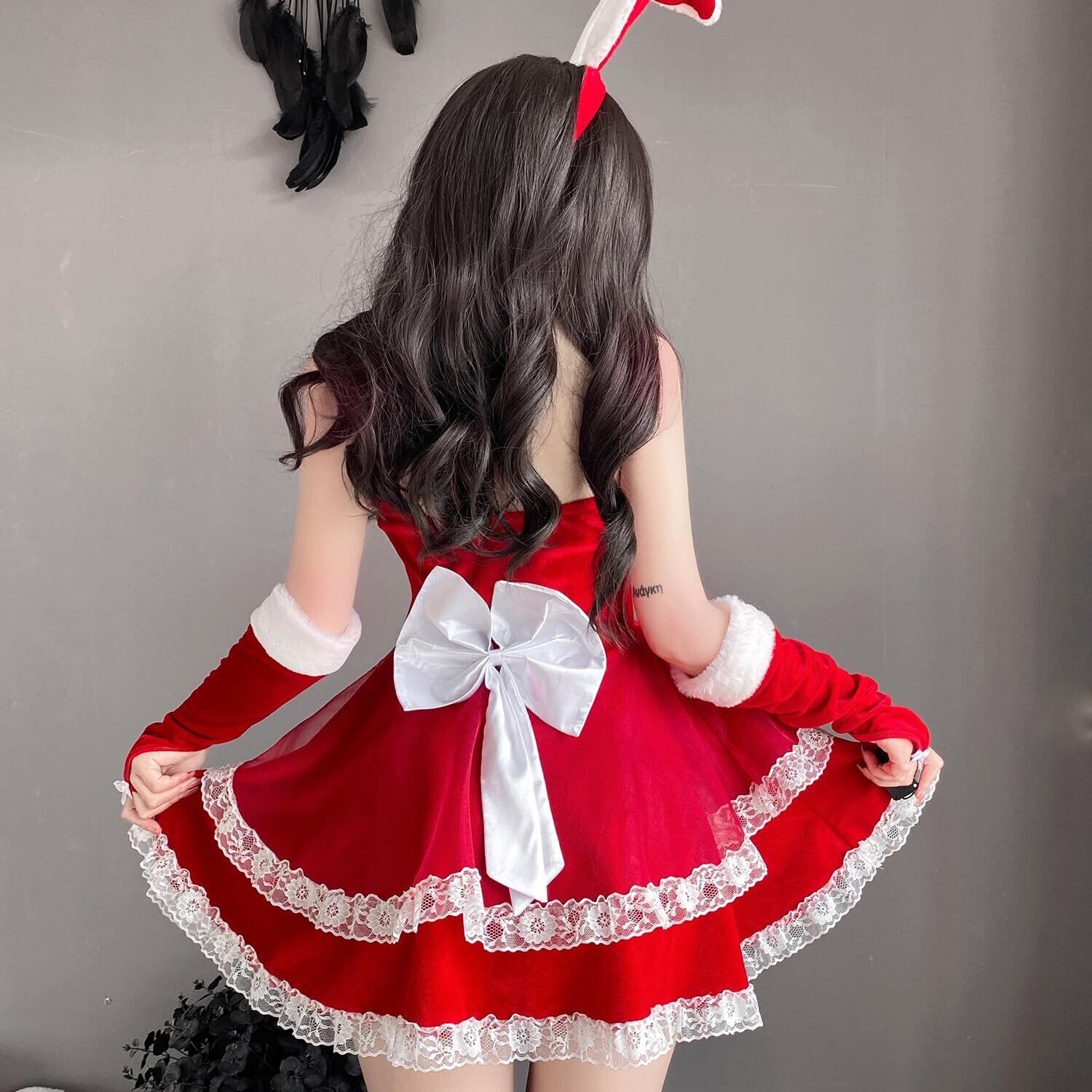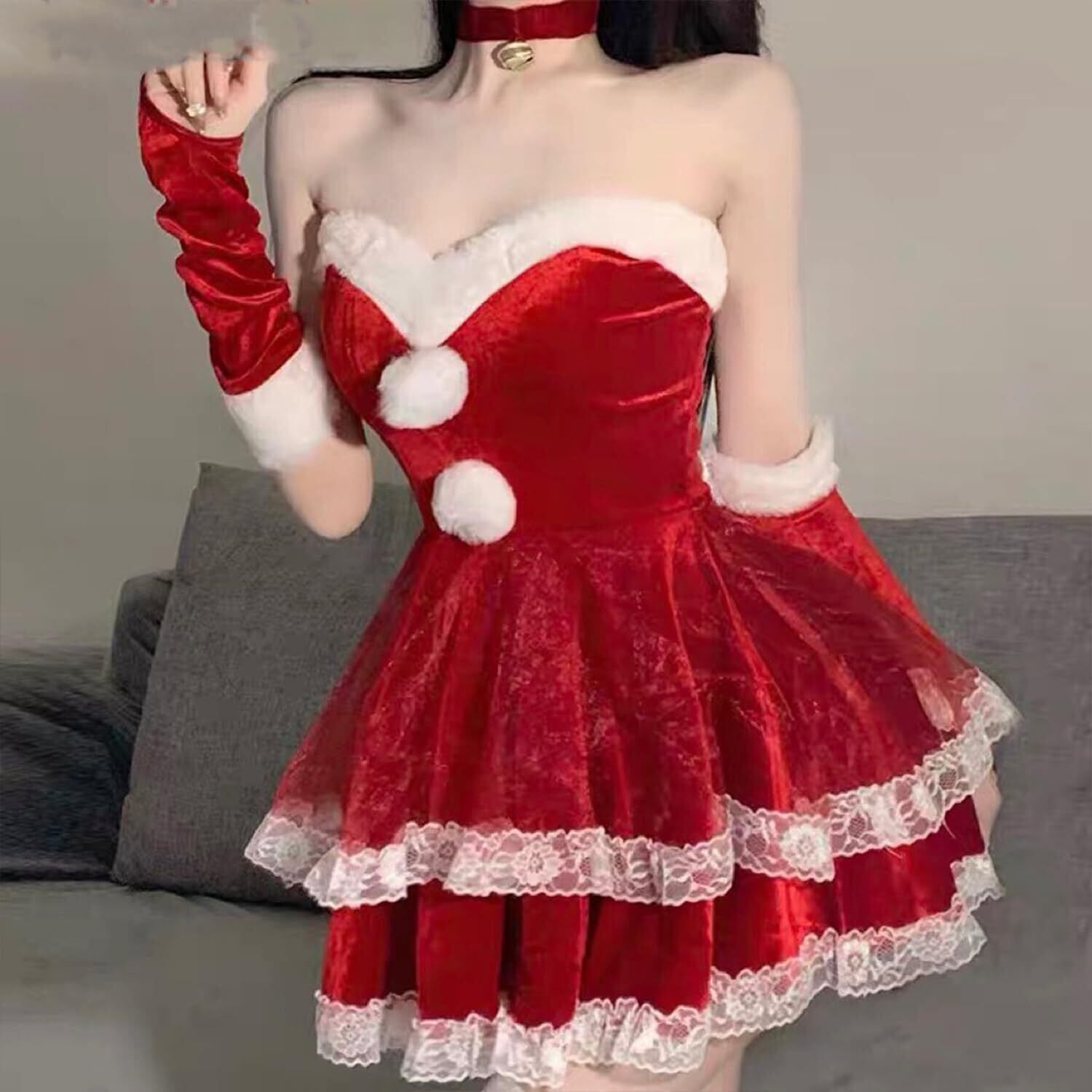 【豪華でコスパ抜群】 ワンピースに加え、可愛いアクセサリーもセットになっており、すぐにクリスマスの雰囲気を演出できます。追加で購入する手間が省け、すぐに完璧なサンタコスプレが楽しめます。