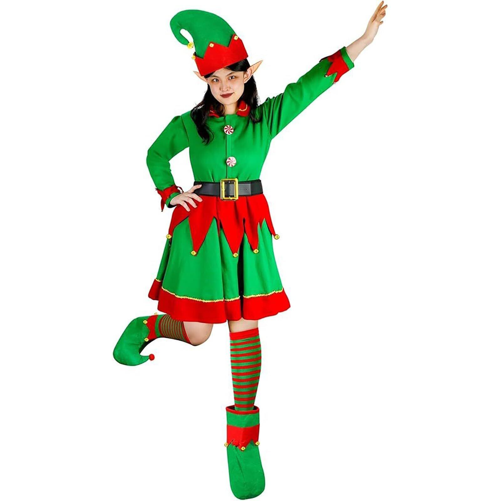 [JZYBHL] サンタ コスプレ レディース 大きいサイズ 可愛い クリスマス 衣装 ワンピース トナカイ 長袖 サンタコス 冬 緑 もこもこ 暖かい 仮装 コスチューム 帽子 文化祭 パーティー イベント おしゃれ サンタクロース 女性 かわいい