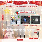 「この『Letmy クリスマス飾り』で、特別なクリスマスの雰囲気を演出しましょう!」/特徴:8つの輝かしい星型のデザインが、夜空のように美しく輝き、クリスマスや特別なイベントを華やかに彩ります。高輝度の暖色LEDが贅沢に使用されており、優しい光が心を癒します。ソーラー充電とUSB-C充電に対応するため、設置場所を選ばず、手軽に使用可能です。