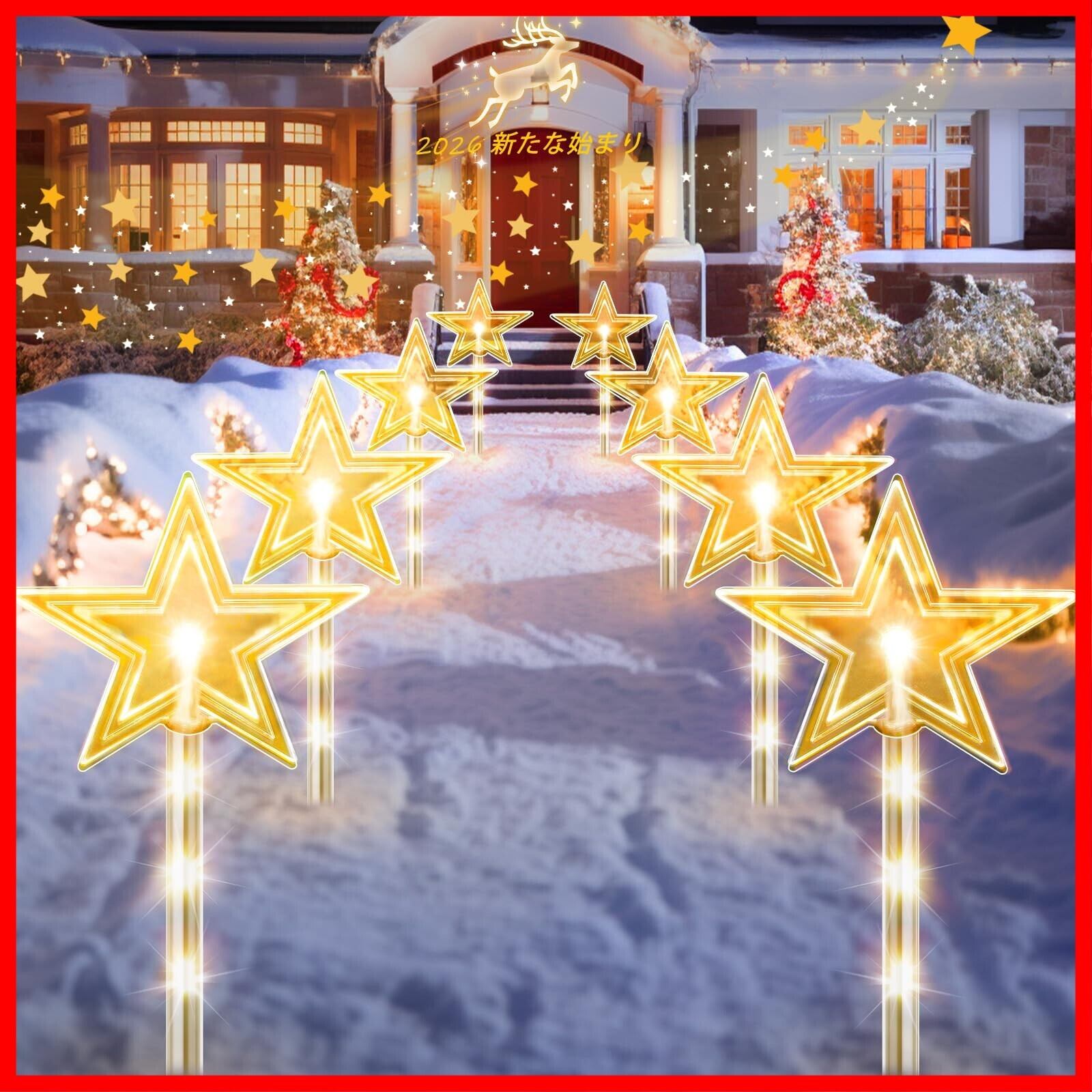 【人気商品】Letmy クリスマス 飾り ソーラーライト 屋外 防水 8つの輝かしい星 埋め込み 電飾 ソーラー充電/USB-C充電ともでき イルミネーション ガーデンライト 屋外 ソーラー 十種類の照明モード IP65防水 高輝度 暖色LED led クリスマス ロマンチック christmas/パーティー/誕生日/結婚式など適用 照明 christmas lights 8個セット | Cherry Blossoms