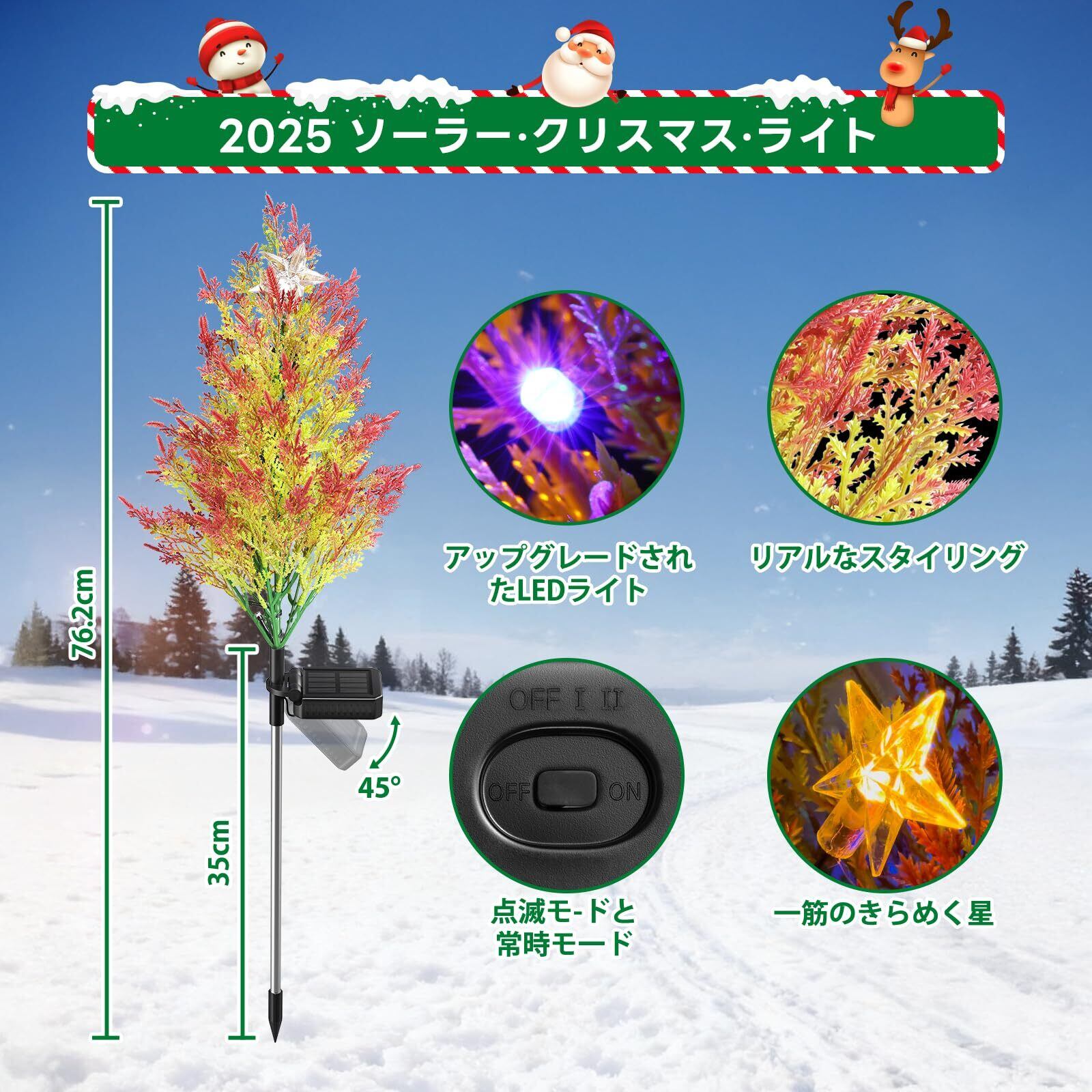 【数量限定】LETMY クリスマス 飾り 屋外 クリスマスツリー イルミネーション ソーラーライト 屋外 防水防雪IP65 常時点灯モードと点滅モード 10個のLEDライトビーズ クリスマス 電飾 ガーデンライト ソーラー おしゃれ christmas lights 2個セット | Cherry Blossoms