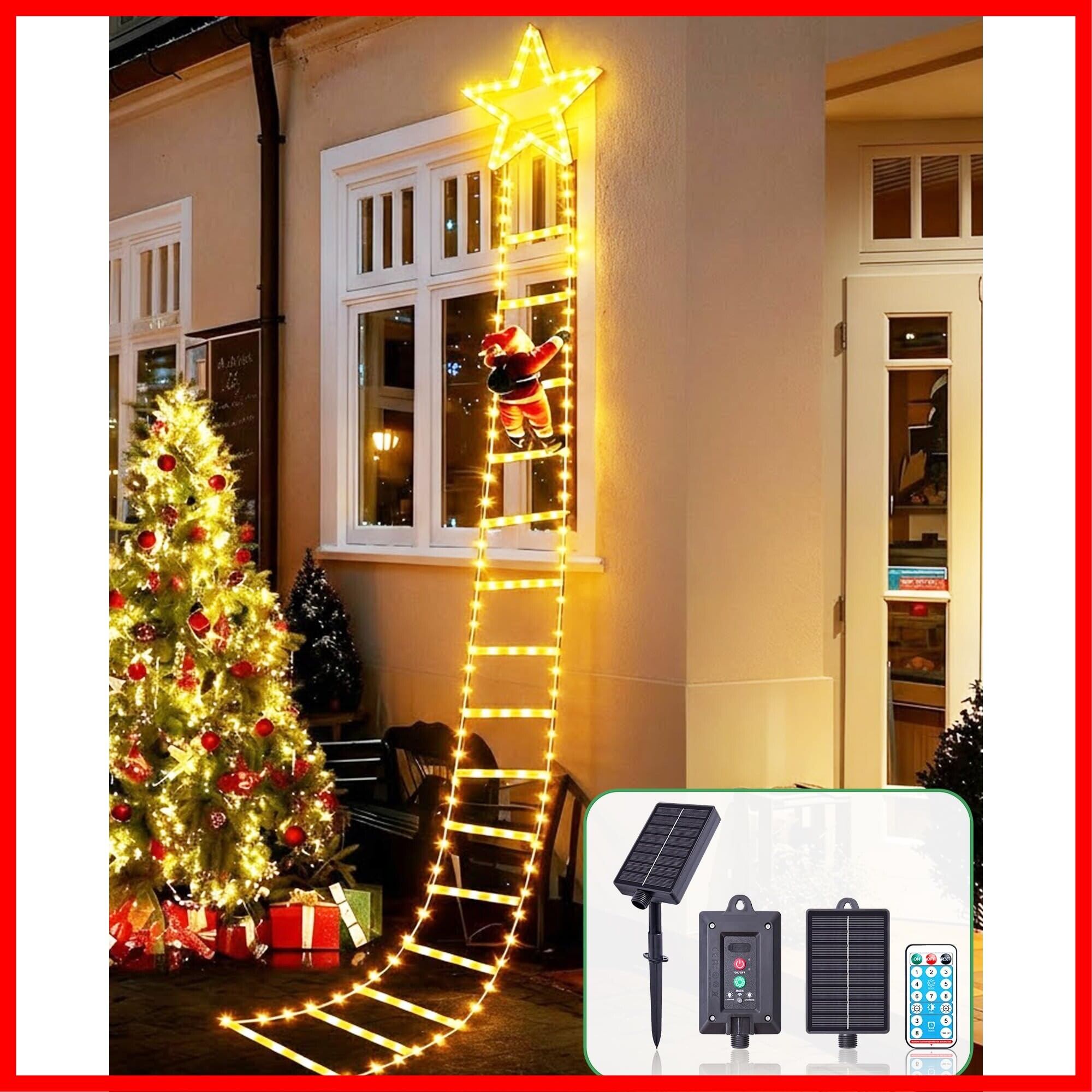 【在庫セール】クリスマス イルミネーションライト ソーラーストリングライト LEDイルミネーションライト 8種類の点灯モード 屋外 防水 ソーラー&USB充電可能 梯子 サンタクロース 266球 3M 自動点灯 消灯 3H/5H/8Hタイマー機能 リモコン付 クリスマス 飾りライト 学園祭 屋外 室内 庭対応 (ウォームホワイト)