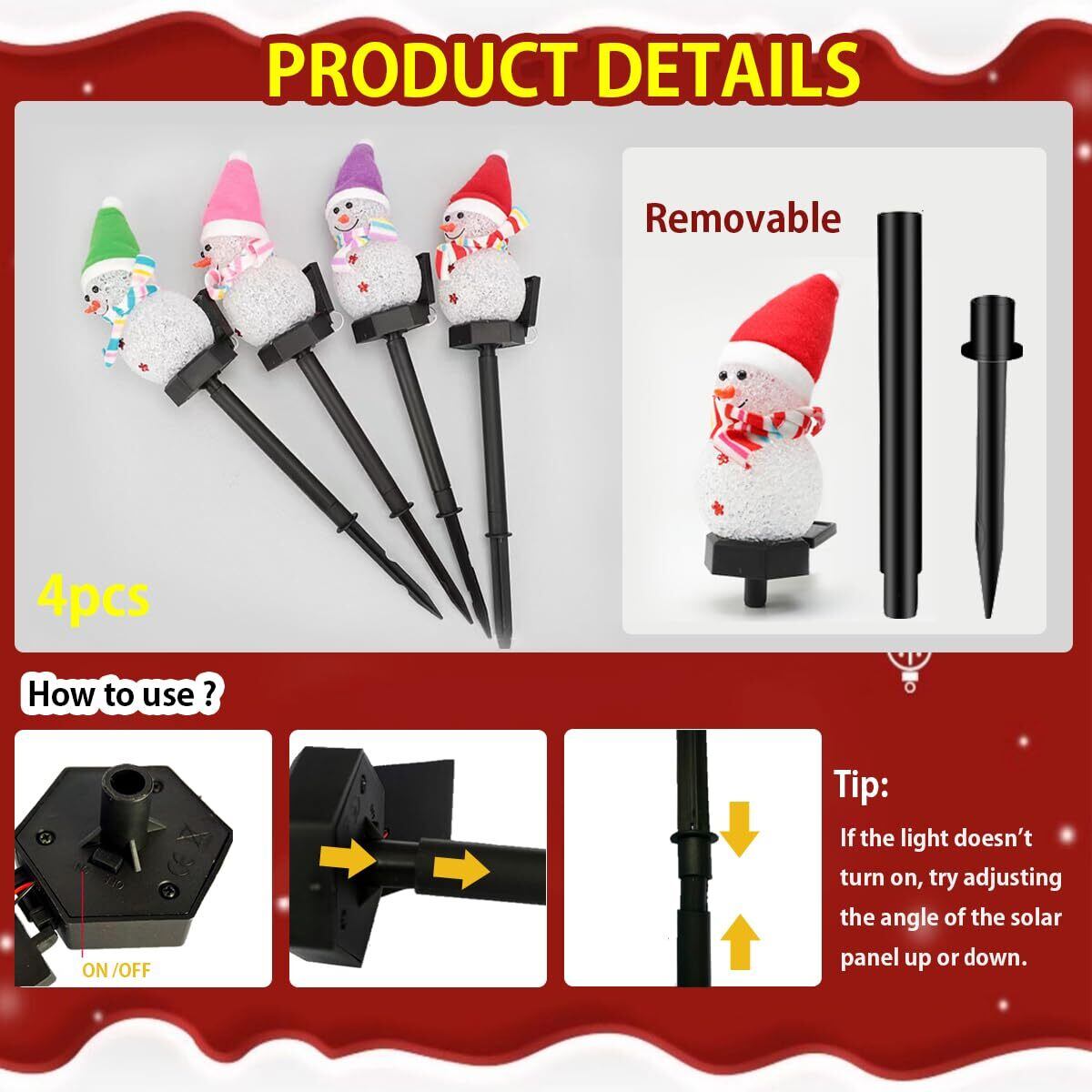 クリスマス ソーラーライト 雪だるま 4点入り クリスマス 飾り ガーデンライト 屋外 おしゃれ イルミネーションライト 埋め込み式 自動点灯 消灯 省エネ 照明飾り 置物 クリスマスグッズ christmas decorations outdoor