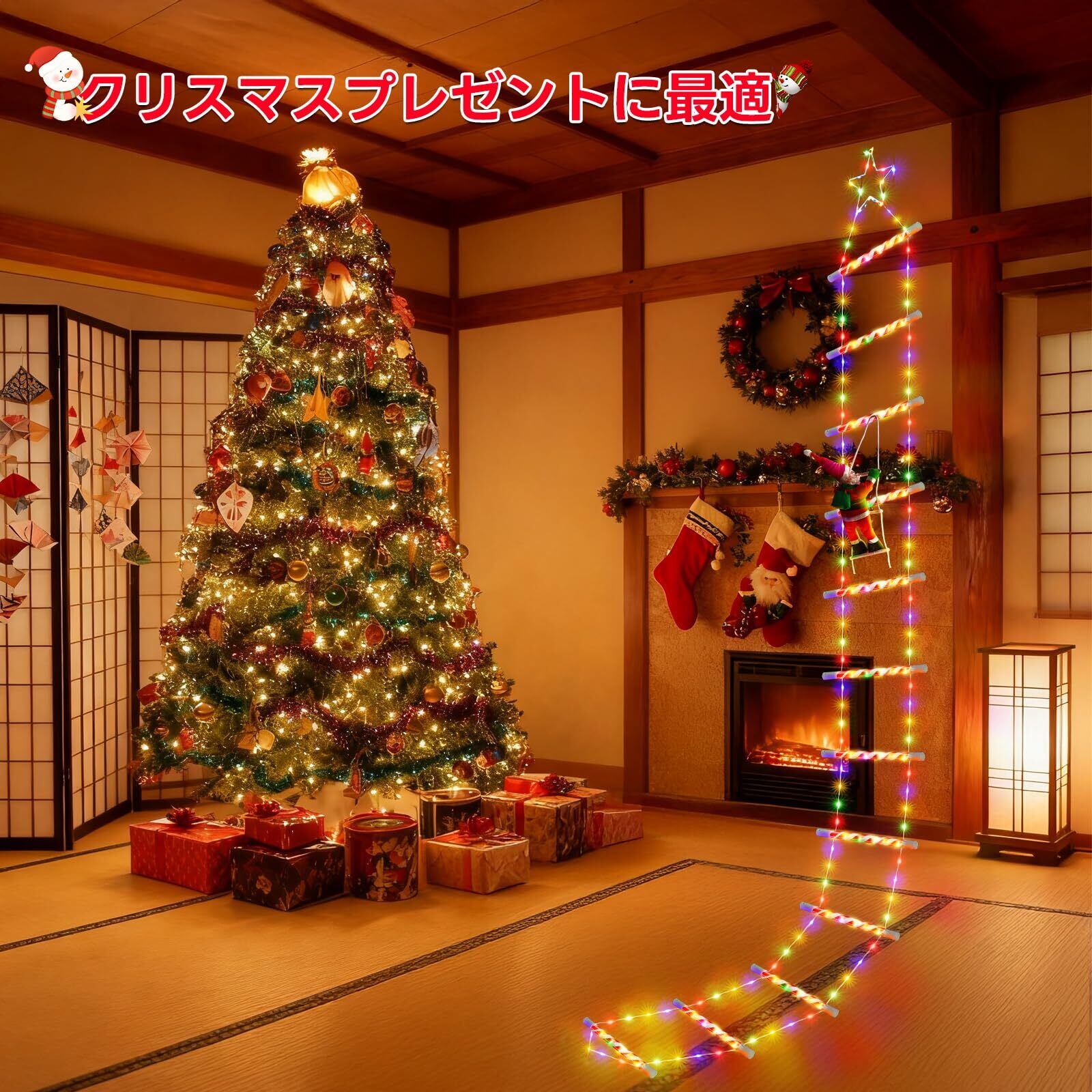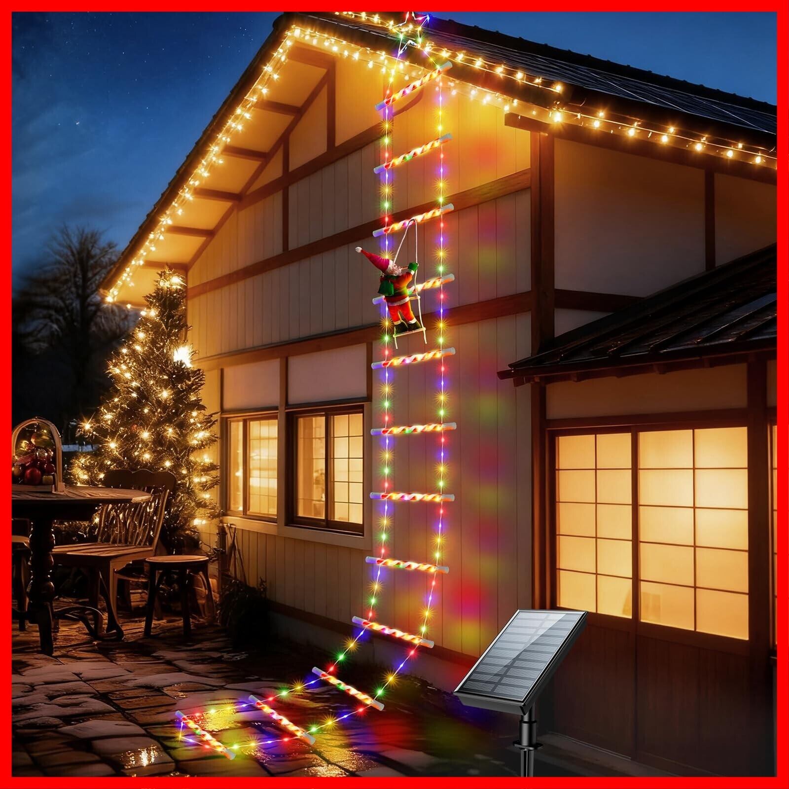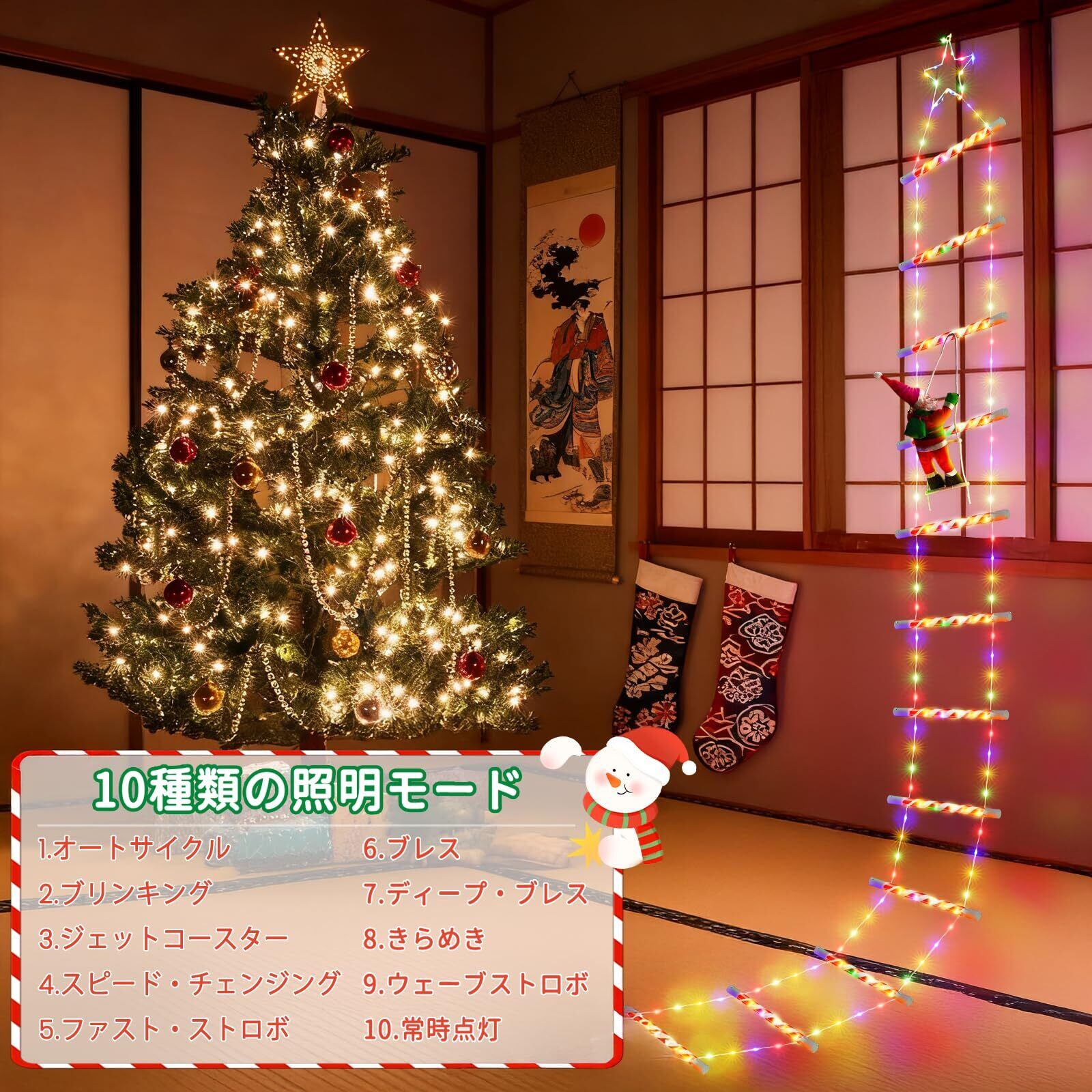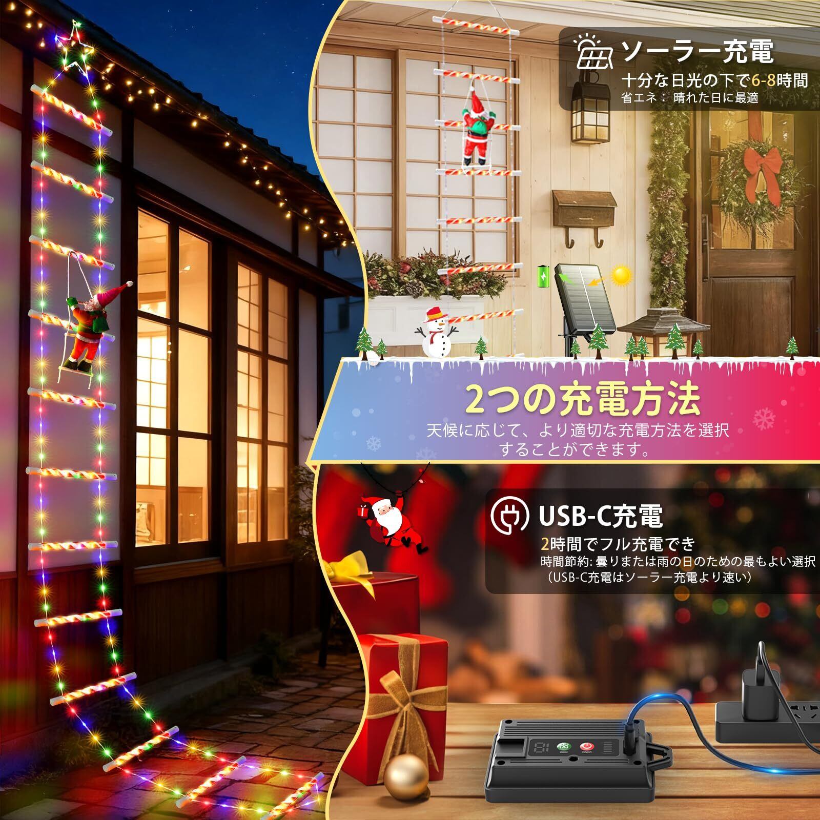Letmy クリスマス 飾り 屋外 ソーラーライト 防水IP65 はしごライト サンタ同梱 ソーラー充電/USB充電 十種類照明モード 1500mAh大容量バッテリー LED イルミネーションライト 屋外 ソーラー イルミネーションロープラダー ガーデンライト クリスマスオーナメント christmas lights 1個セット