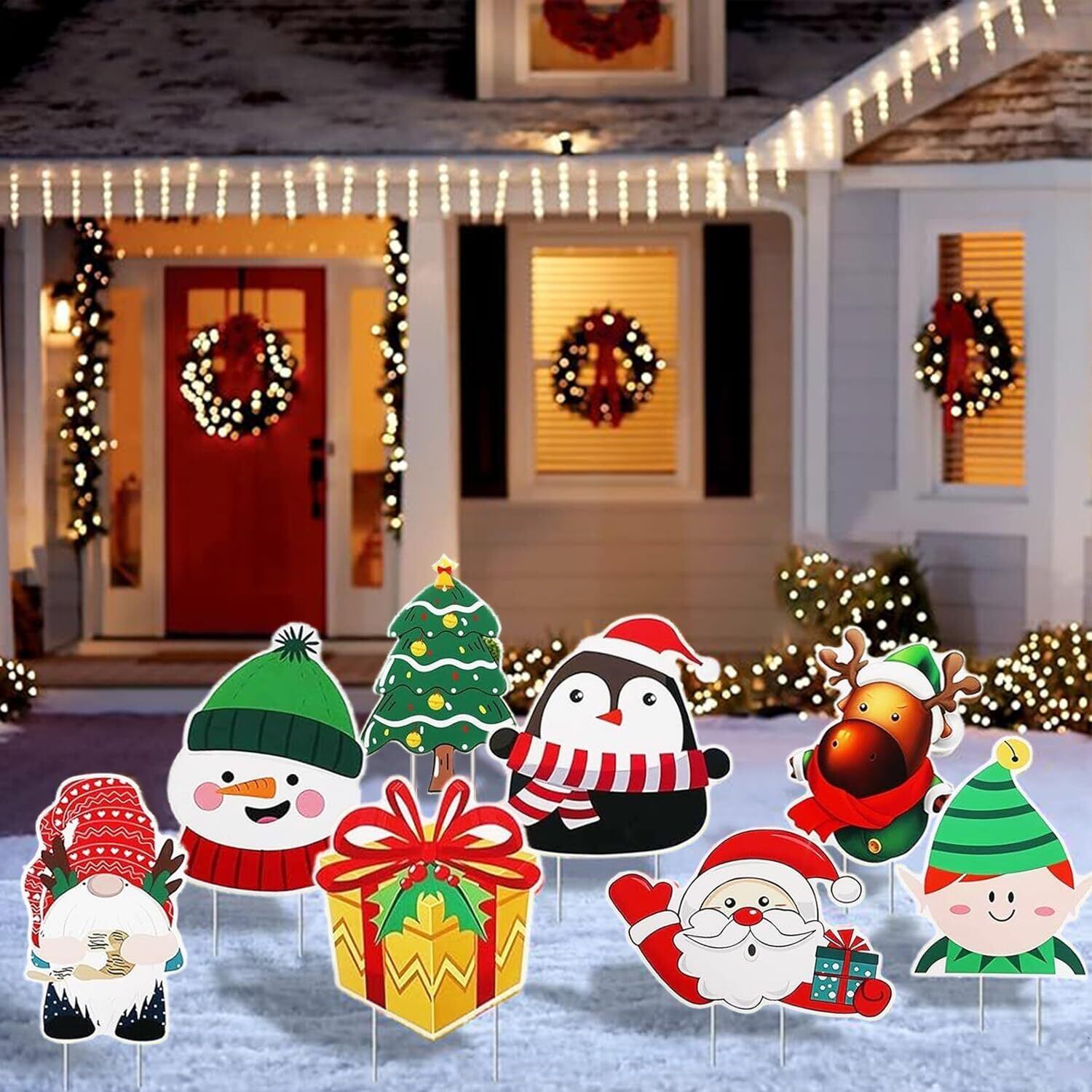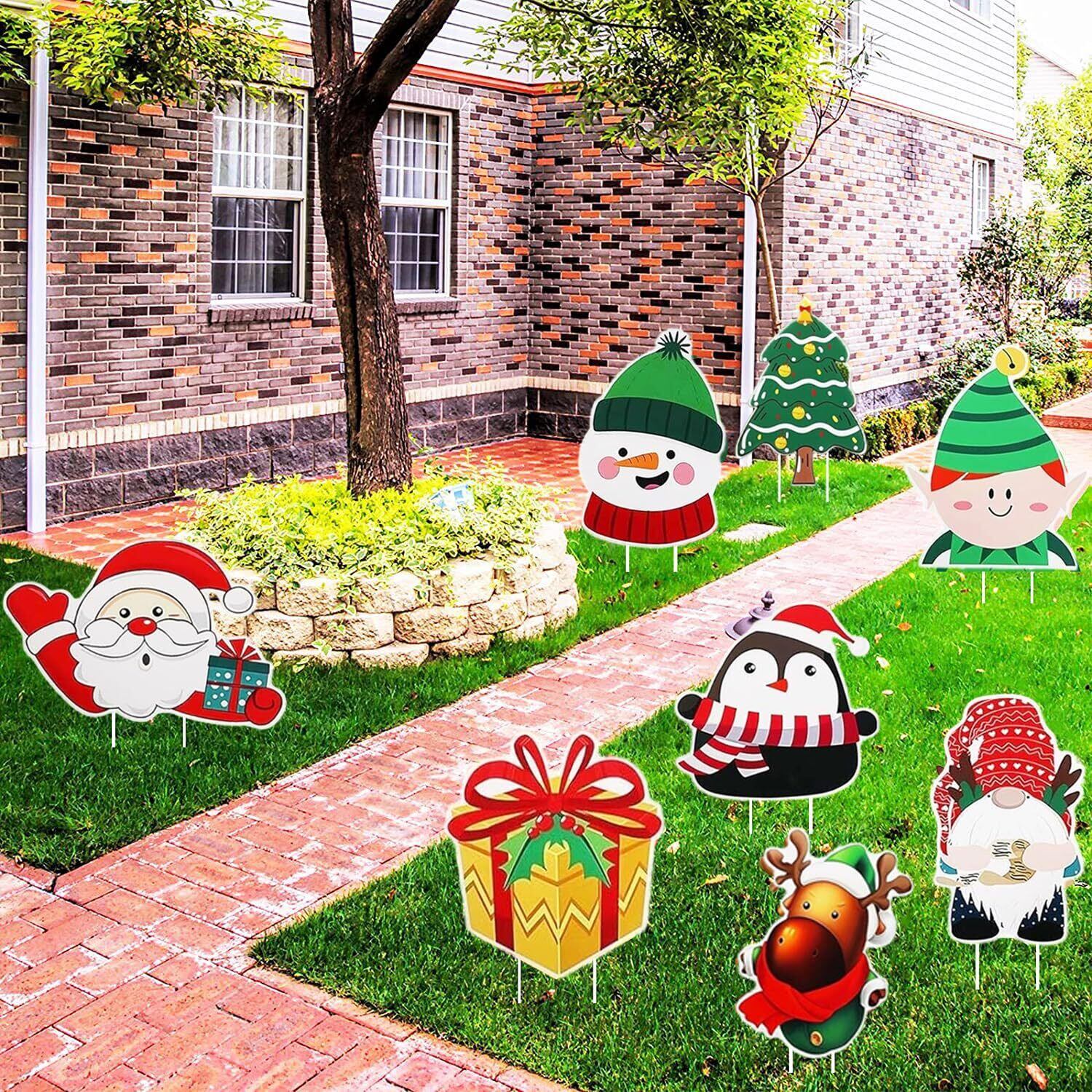 【人気商品】クリスマス 庭 置物 クリスマス 飾り 屋外 8枚セット サンタ クリスマス 装飾 ガーティー マーカー クリスマスグッズ 雪だるま トナカイ ペンギン ギフトボックス クリスマス デコレーション | Cherry Blossoms