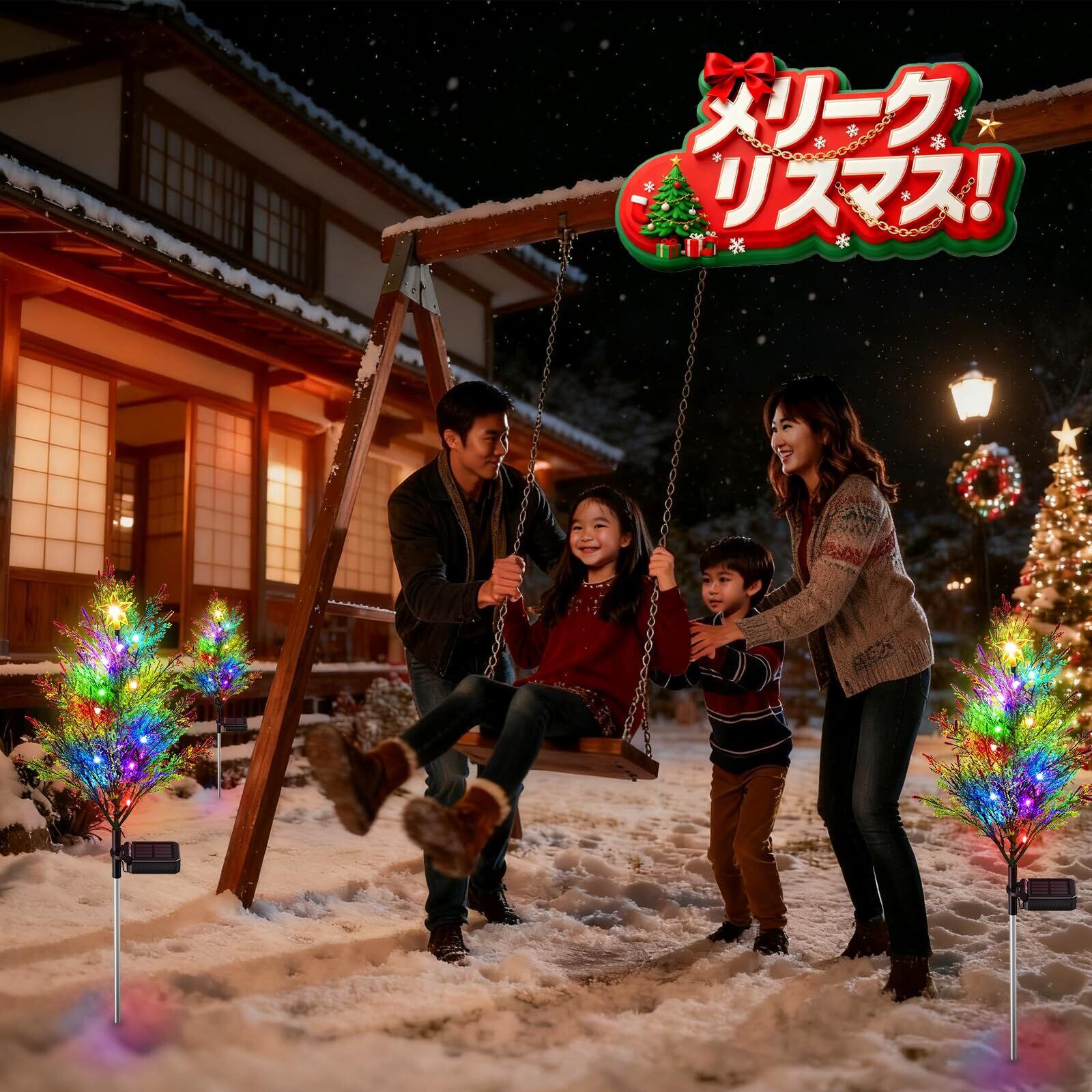 本商品はIP65等級の防水仕様を備えており、雨や雪の日でも安心して使用できる耐久性があります。厳しい天候にも耐えうる設計で、長期間にわたってクリスマスの美しさを堪能することができます。お庭や玄関先のデコレーションとしても最適です。
