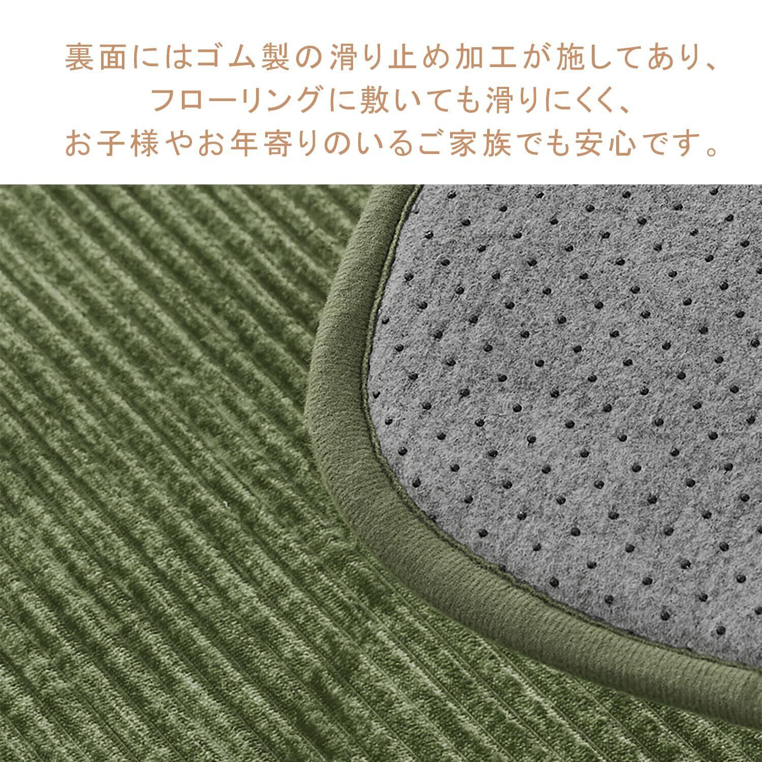裏面には滑り止め加工が施されており、移動やずれを防いで安全に使用することができます。小さなお子様やペットがいる家庭でも安心してお使いいただける設計です。安心感を持ちながら快適にお過ごしいただけます。