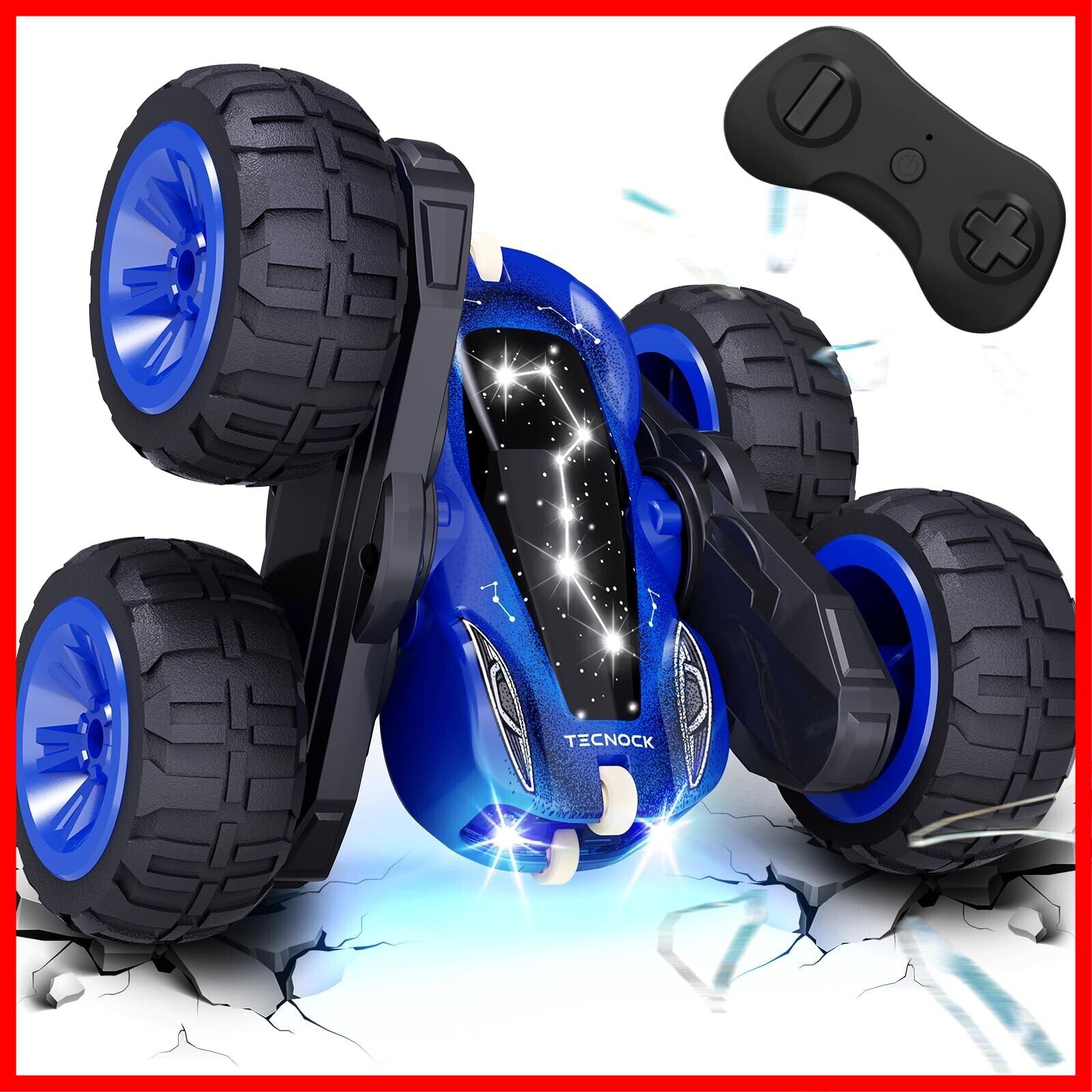 Tecnock ラジコンカー 子供向け USB Type-C直接充電式 スタントカー 360度回転 両面走行 テクノック ラジコン オフロード 4WD四輪駆動 RCカー 2.4GHz おもちゃ 車 男の子 誕生日 贈り物 プレゼント (ブルー)