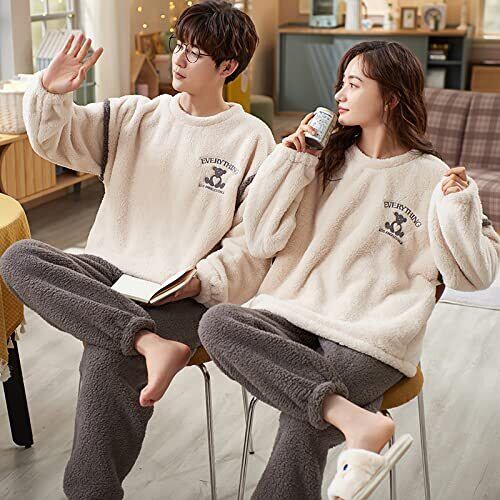 [D.IIZOO] ペア パジャマ メンズ レディース 保温 カップルパジャマ ナイトウェア ペアパジャマ 長袖 もこもこ 冬 カップル ペア ルームウェア 上下セット お揃い 寝巻き 部屋着 結婚祝い クリスマス プレゼント YY1062