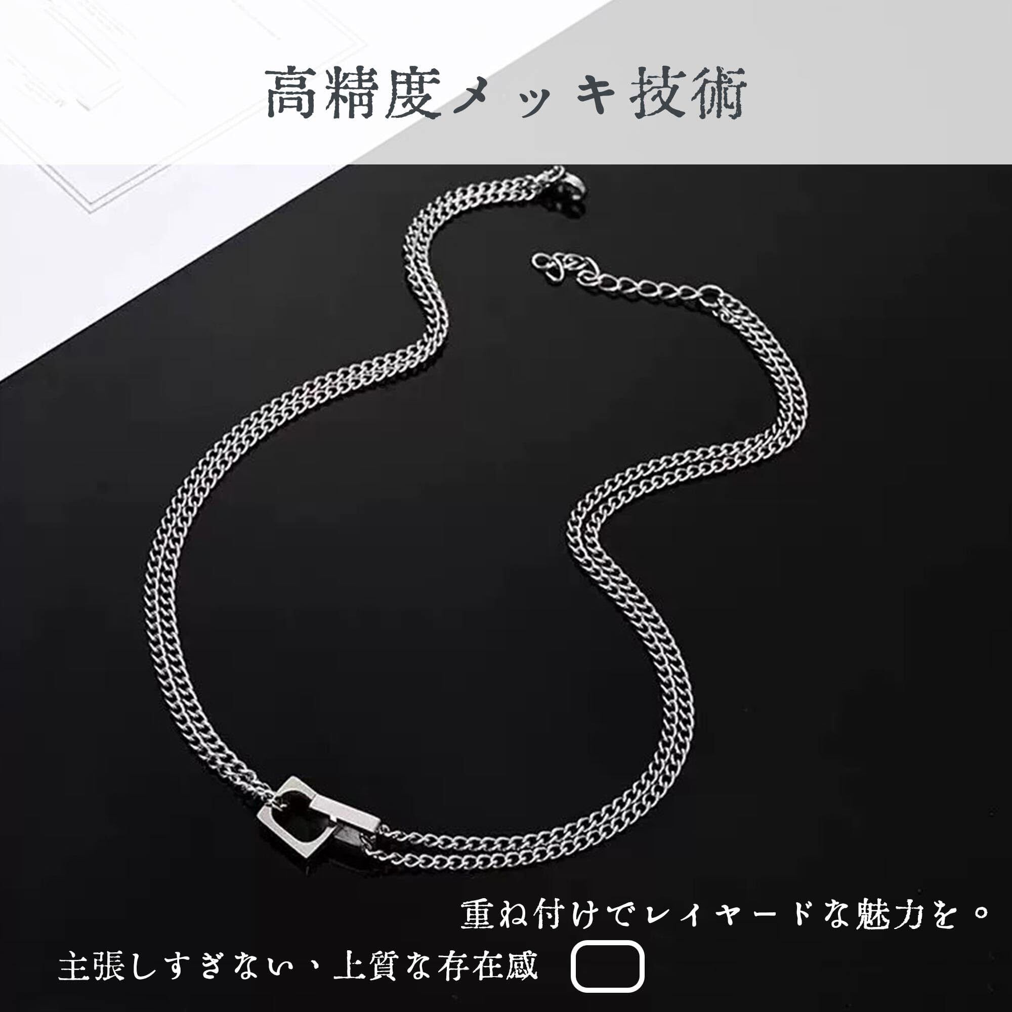 【安心の素材】:肌の健康を最優先に考え、このネックレスには、肌に優しいサージカルステンレスをベースに使用し、アレルギー反応が起こりにくい素材を選定したことで、敏感肌の方でも安心して着用できます。丁寧に磨き上げられた輝きと、こだわりのデザインが融合して、色合いも質感も洗練された仕上がりとなっています。厳選した素材を使い、高品質な商品開発を追求しています。お好みのサイズをお選びいただける、最大約50mmの調節が可能な設計