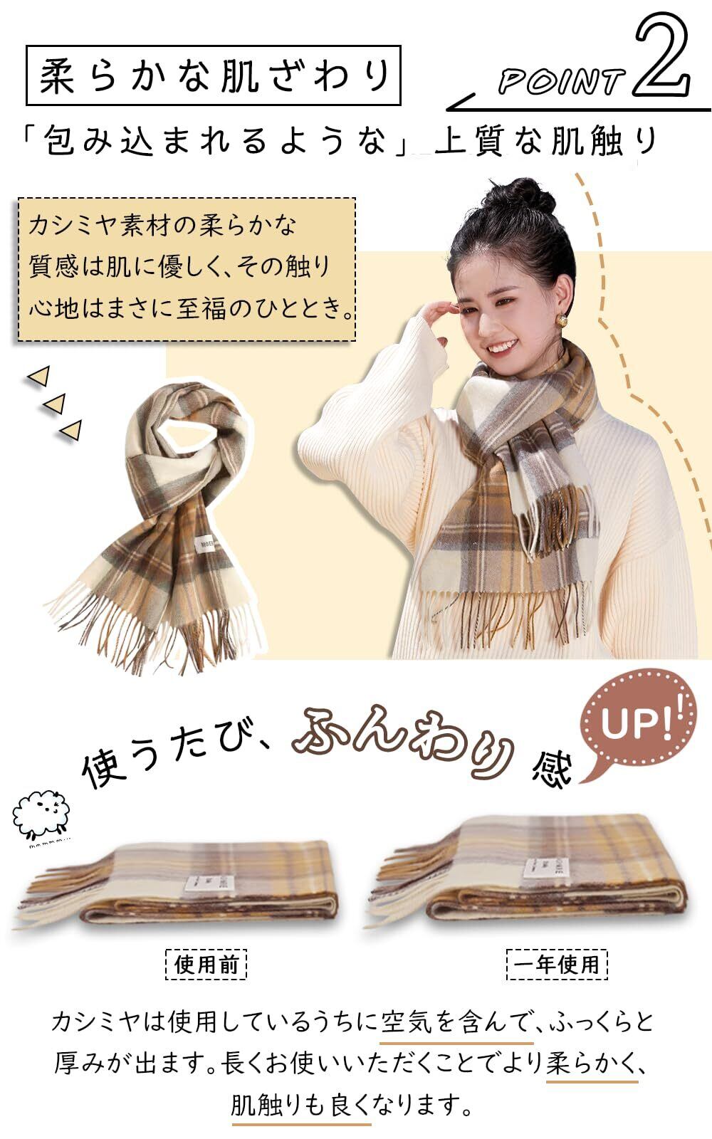 「この『Utukky カシミヤマフラー』で、冬のおしゃれを楽しみましょう!」/特徴:贅沢なカシミヤ100%を使用したこの大判マフラーは、内モンゴル産の高品質な素材で仕立てられています。チェック柄のデザインがアクセントとなり、シンプルなコーディネートにも華やかさをプラスします。