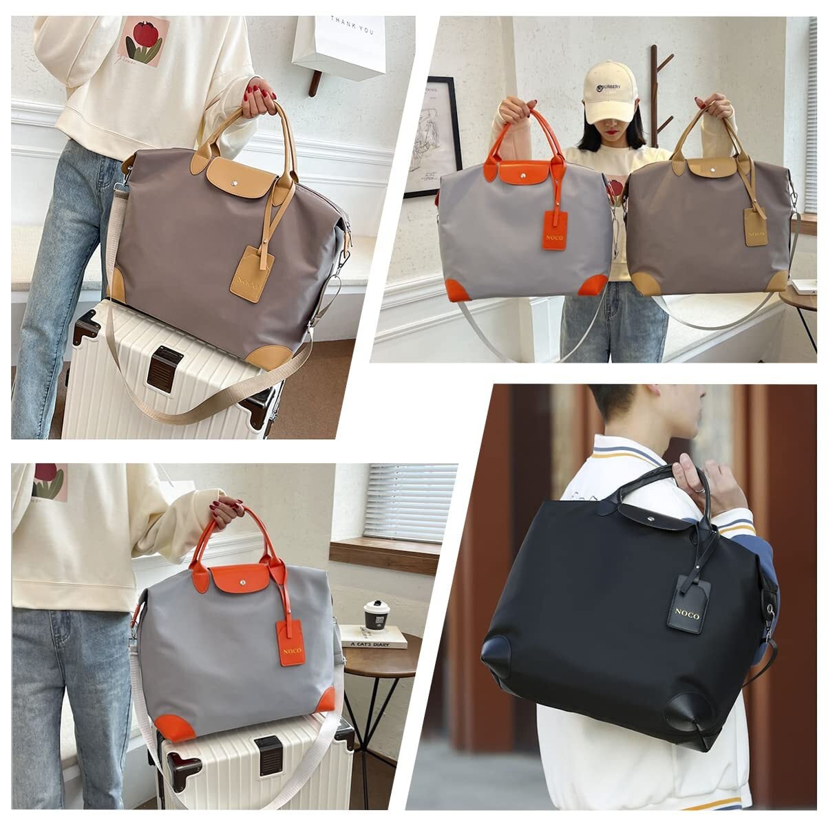 手持ちとショルダーの2way仕様を兼ね備えており、シーンに応じた持ち運びが可能です。ショルダーストラップは調整可能で、移動時の負担を軽減。スーツケースにも固定できるキャリーオン機能がついており、快適な移動を実現します。