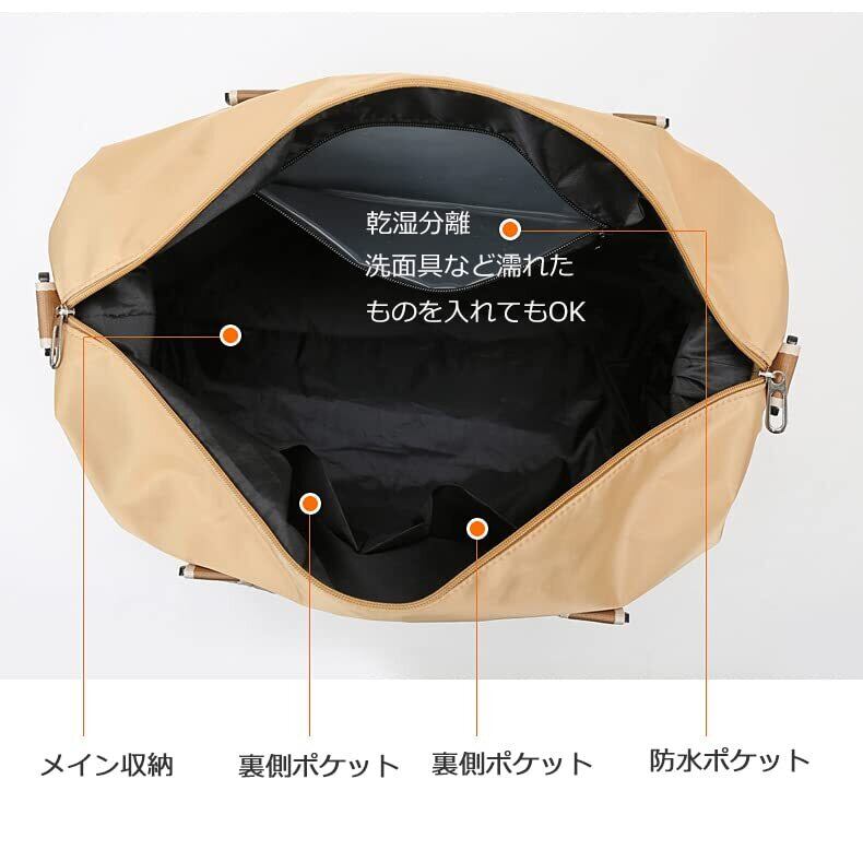 【大容量・たっぷり収納】35Lの大容量で仕上がり、メインポケット、小物ポケット、乾湿分離ポケット、フロント ポケット、裏側ファスナーポケットなどが設けられ、化粧品、衣類、電子デバイス、傘など2泊3日程度の荷物を 仕切りよく納められ、利便性が高いです