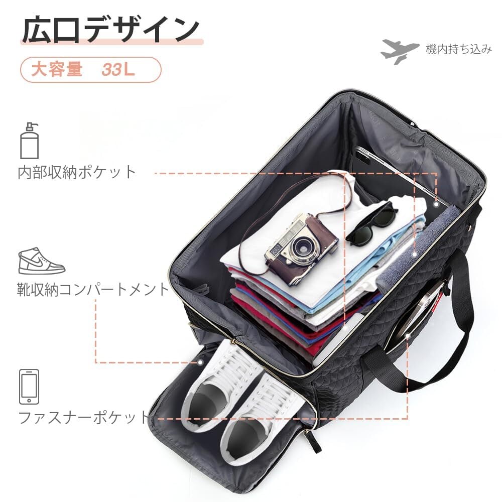 Lekesky ボストンバッグ - 33L 小さめ 軽量 旅行バッグ 靴収納 防水 機内持ち込み キャリーオンバッグ 旅行カバン がま口 折り畳み 一泊二日 2泊 旅行/修学旅行/出張/アウトドア 機内持ち込み レディース メンズ ブラック