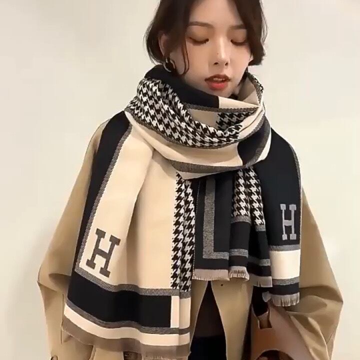 マフラー×ショール×大判ストール・大人気★千鳥Hロゴ・リバーシブル・ブランケット・スカーフ