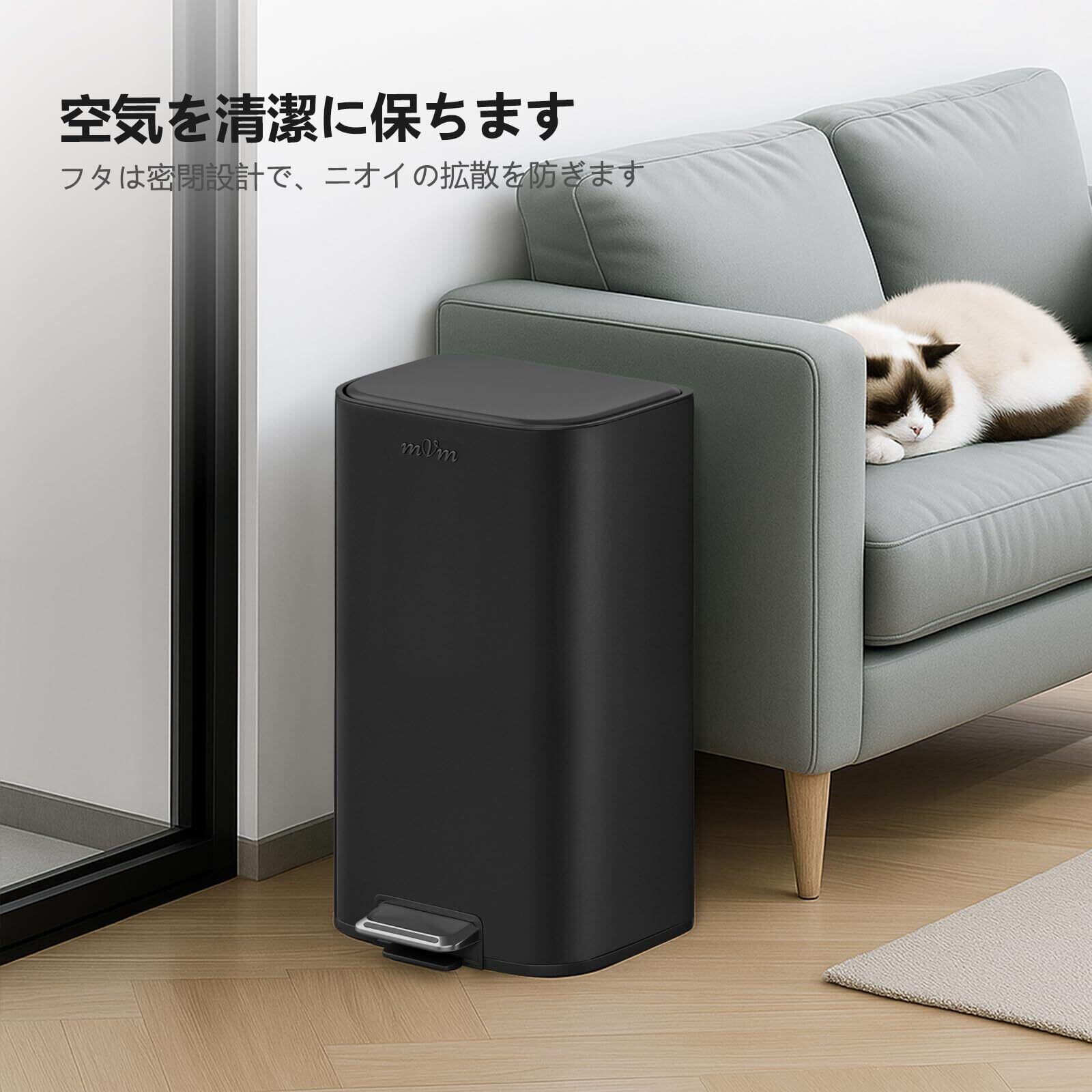【静音設計】ペダル式ゴミ箱にはダンパーが付いており、軽やかに静かに蓋が閉まるため、静かな環境を実現します。家庭やオフィスなど、どんな場でも心地よく使用できます。密閉されたふた付きゴミ箱がニオイの漏れを防止し、快適な空間を保ちます。