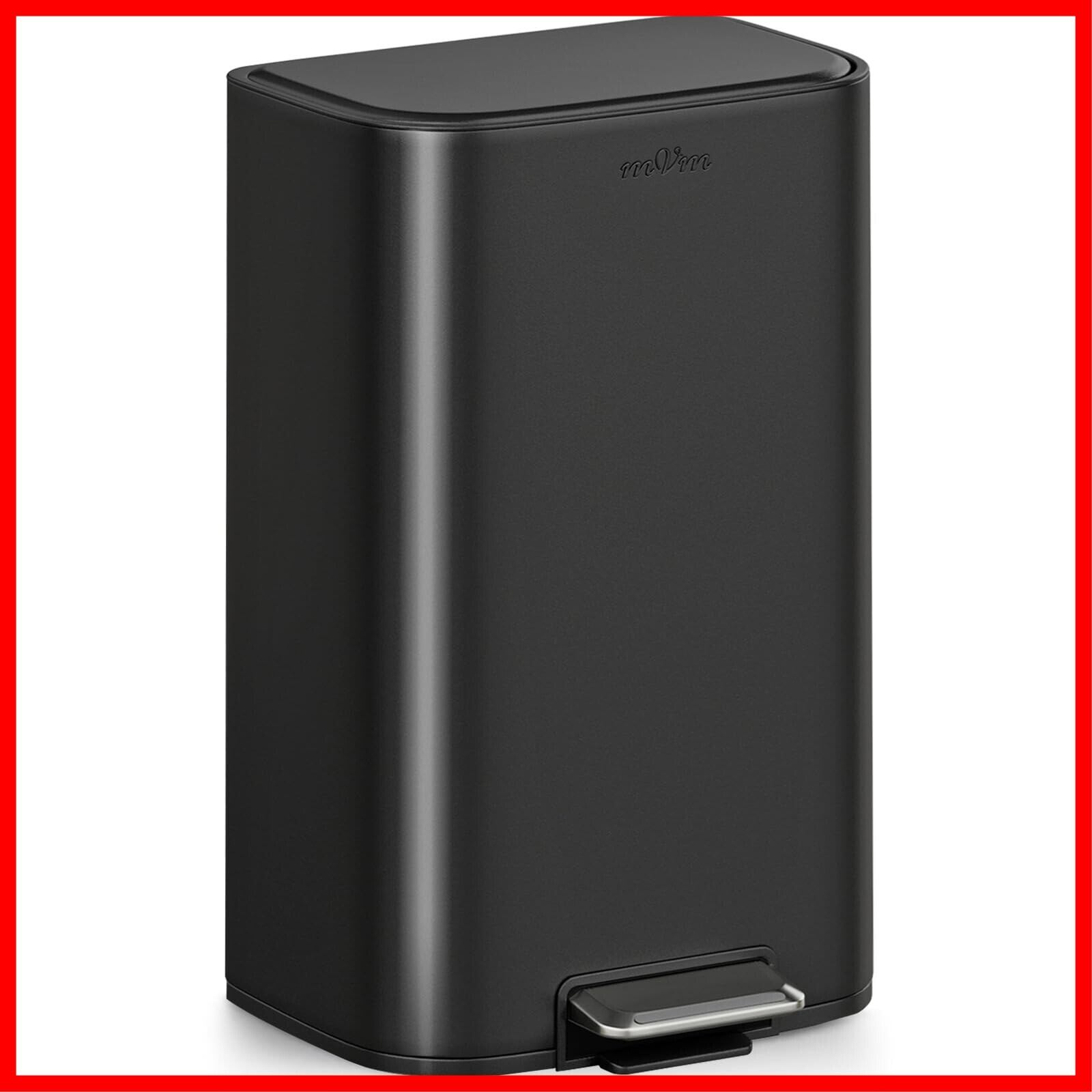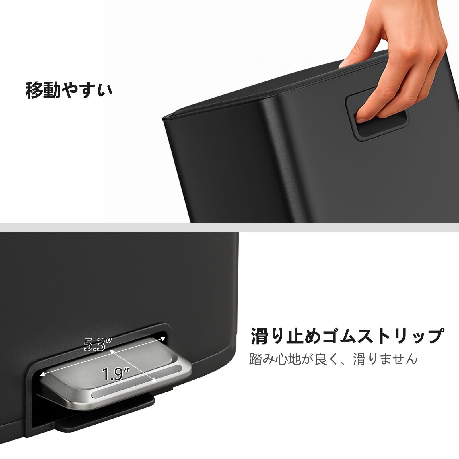 mVm ゴミ箱 40L ダストボックス ステンレス製 ふた付き おしゃれ ペダル式 大容量 静音 指紋防止 袋が見えない キッチン リビング オフィス用 ブラック 長方形 ブラック