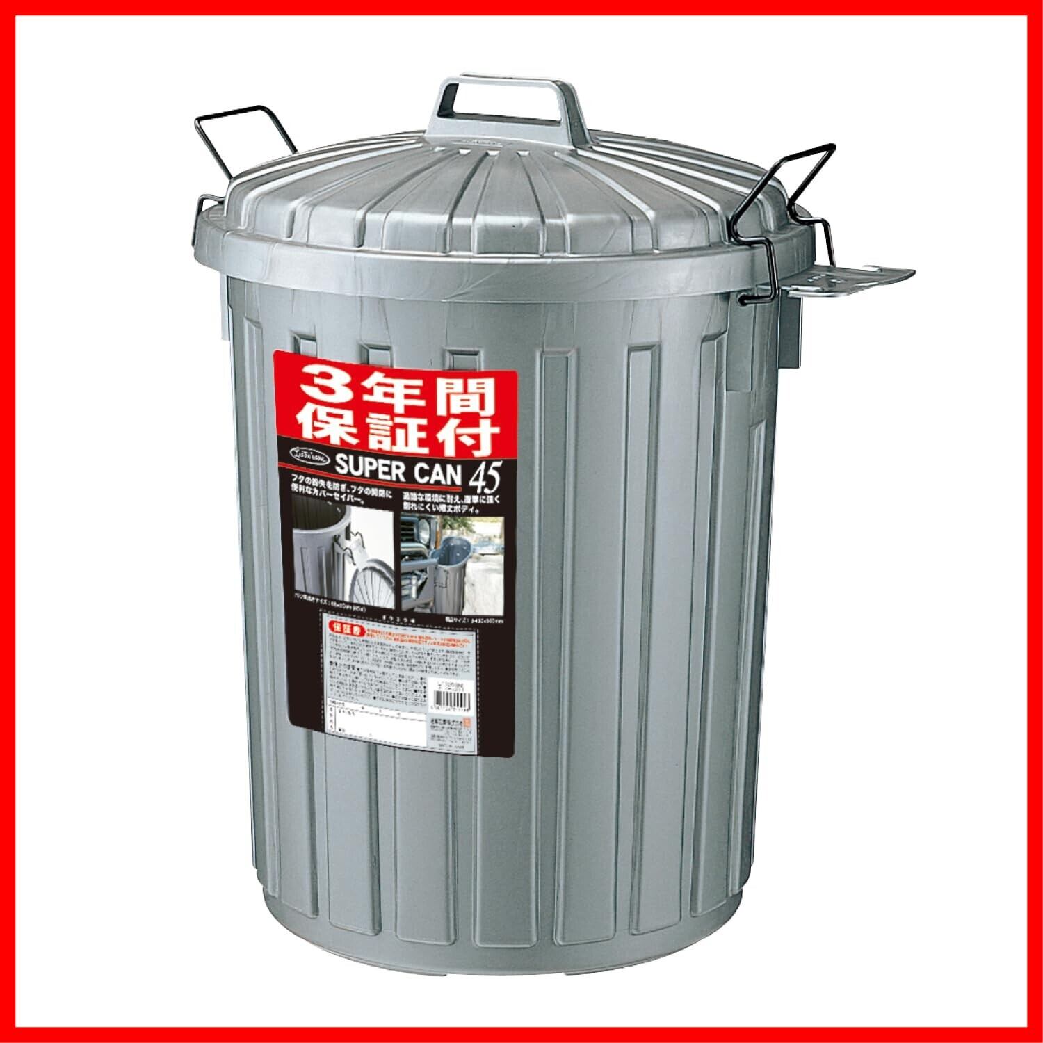 【人気商品】岩崎工業 日本製 ゴミ箱 日本製 屋外 頑丈 丈夫 フタ付き ロック式 丸型 45L シルバー スーパーカン L-112C GM
