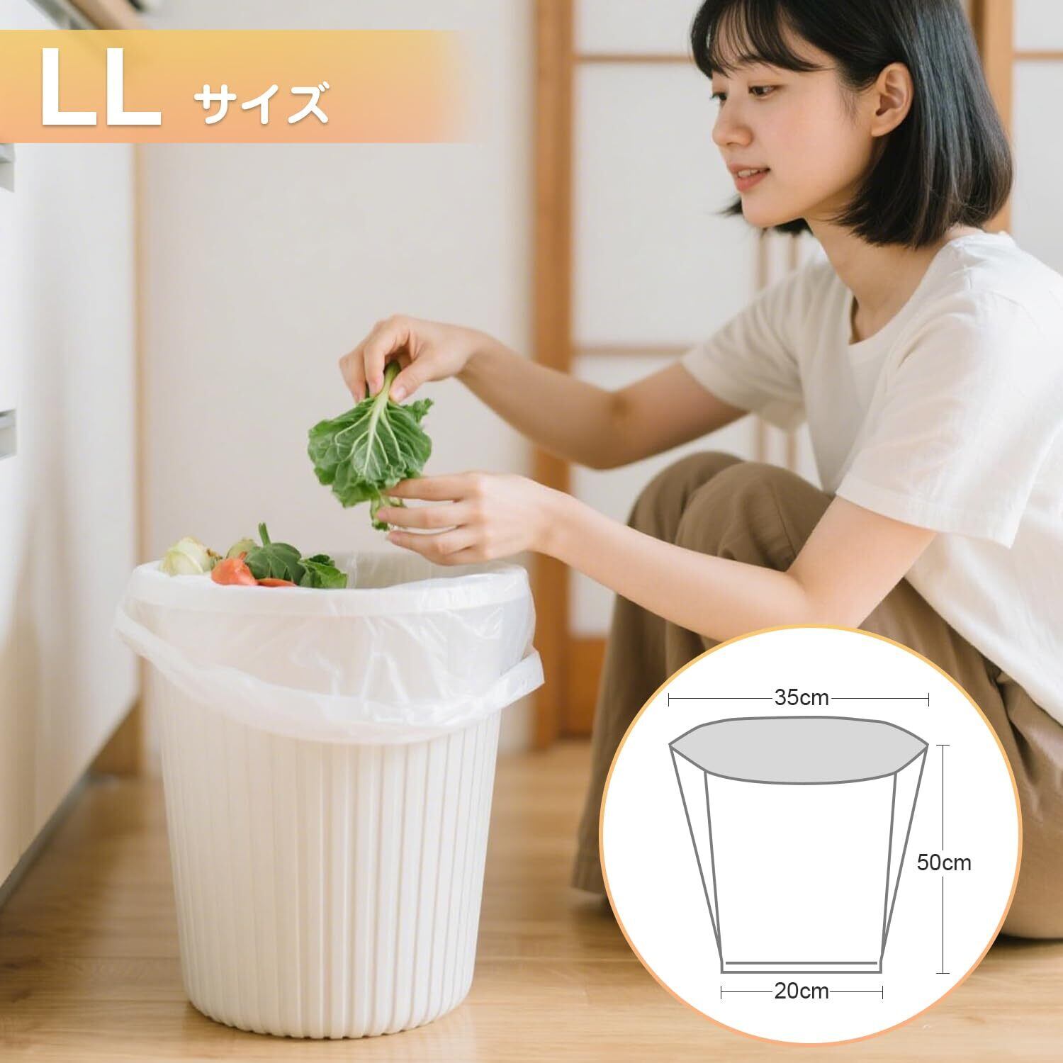 「この『生ゴミが臭わない袋』で、快適な生活空間を守りましょう!」/特徴:LLサイズのこの消臭袋は、使い勝手の良い60枚入り×2パック(合計120枚)。臭いをしっかり封じ込める工夫が施されており、家庭のゴミ処理から介護、ペット用にまで幅広く活躍します。
