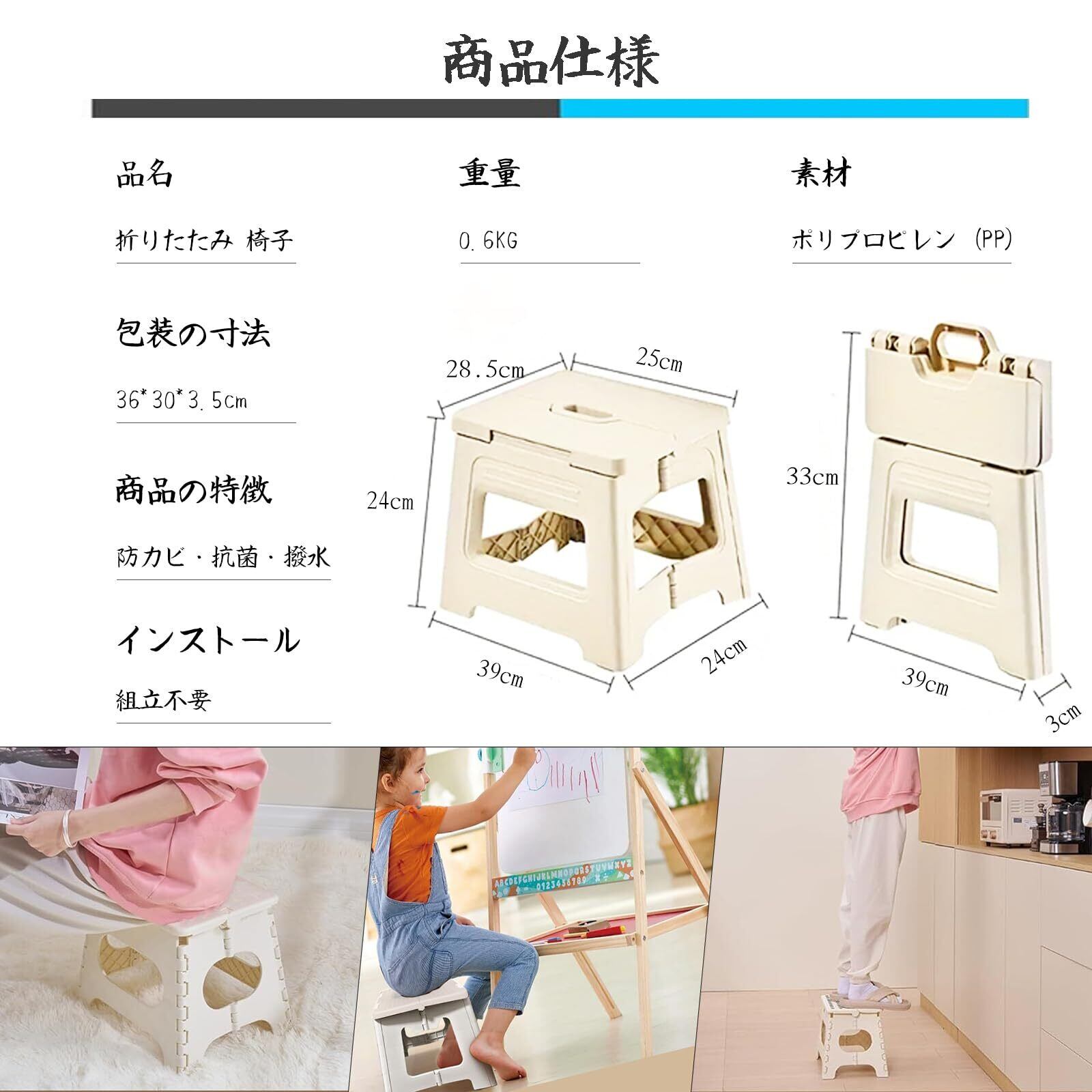 【さまざまなシーンで活躍】踏み台や椅子としても使える万能ツール。屋内、倉庫から、公園、釣り、キャンプなど、アウトドアでも幅広く活用できます。また、車の洗車、エアコンの掃除、幼児のトイレトレーニングにも役立ちます。