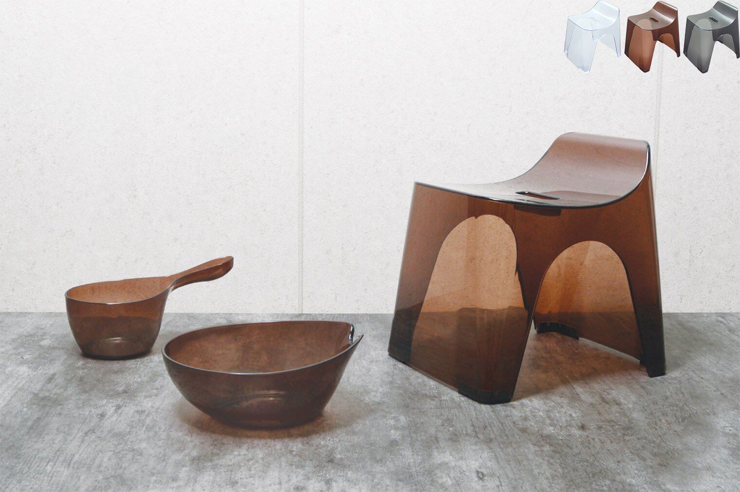 こちらの風呂椅子は、クリアな素材を使用しており、洗練された印象を与えます。視覚的に空間を広げ、落ち着きあるバスルームを演出します。