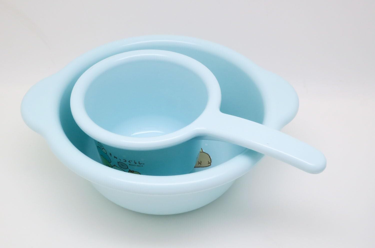 すみっコぐらしの浴用品シリーズです。とっても可愛いすみっコたちがデザインされた、清潔感のある色味の子供用手おけです。