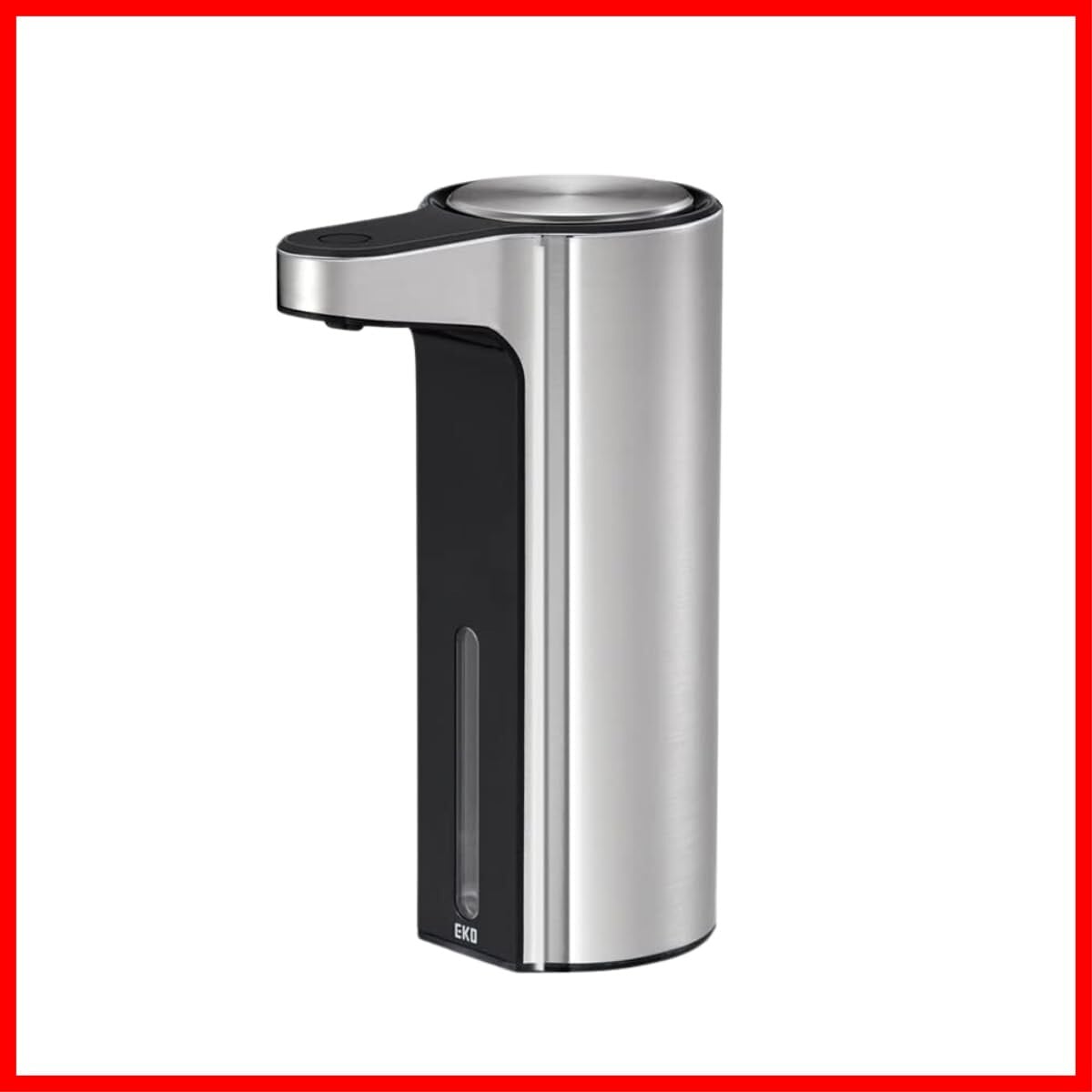 「この『EKO アロマソープディスペンサー』で、おしゃれかつ便利な洗面空間を楽しみましょう!」/特徴:シルバーの洗練されたデザインの自動泡タイプディスペンサーは、家族みんなが使いやすい3段階の吐出量設定が可能です。洗剤の詰りを防ぎ、内部洗浄機能も付いているので、常に清潔に保てます。