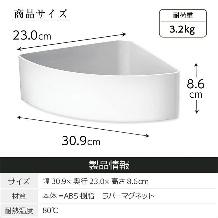 特徴:マグネット取り付け、コーナー型、ホワイト、コンパクトサイズ